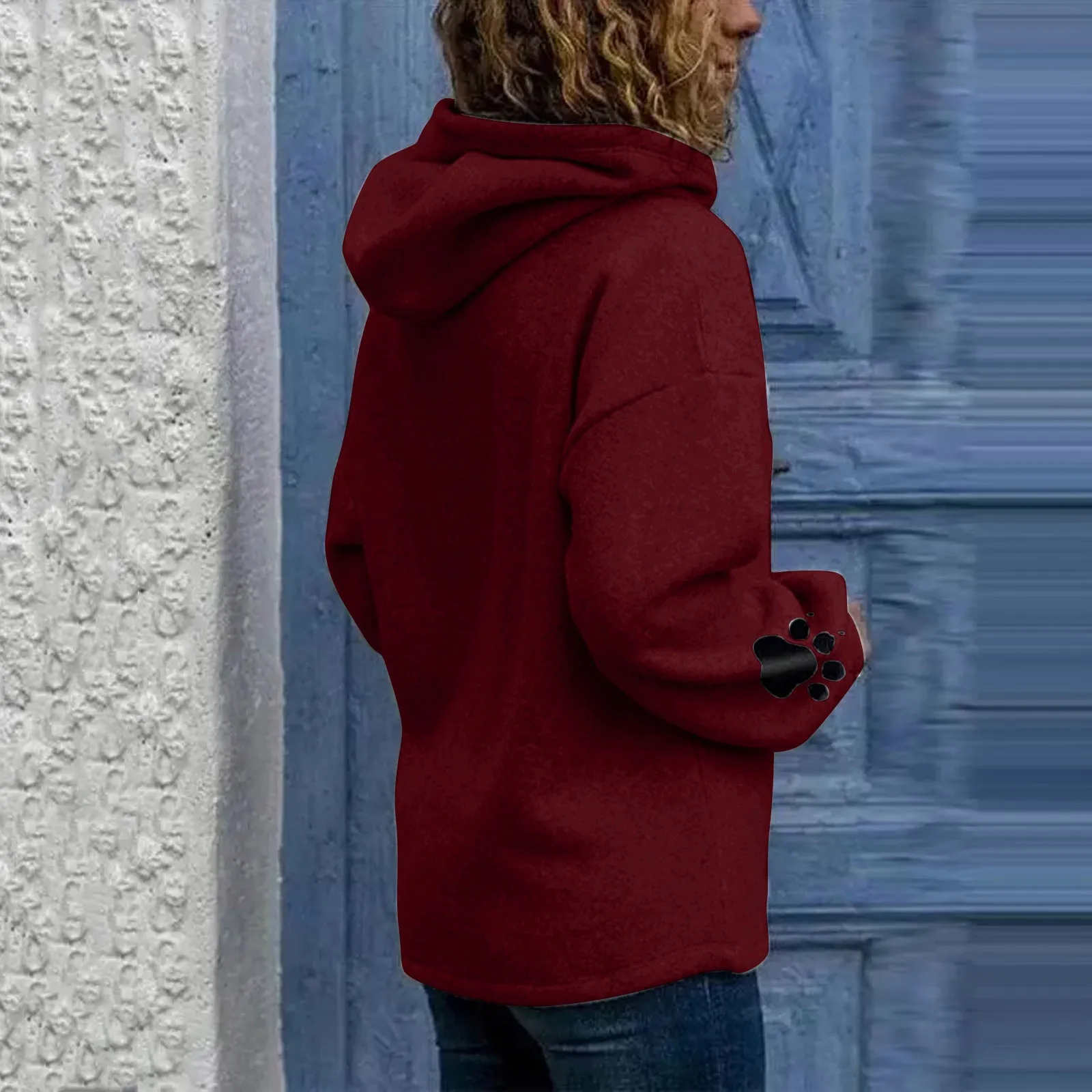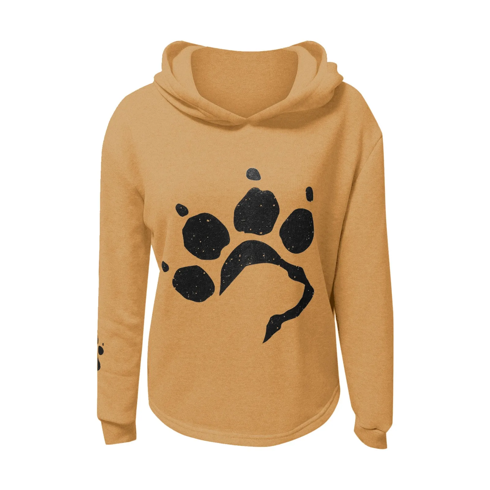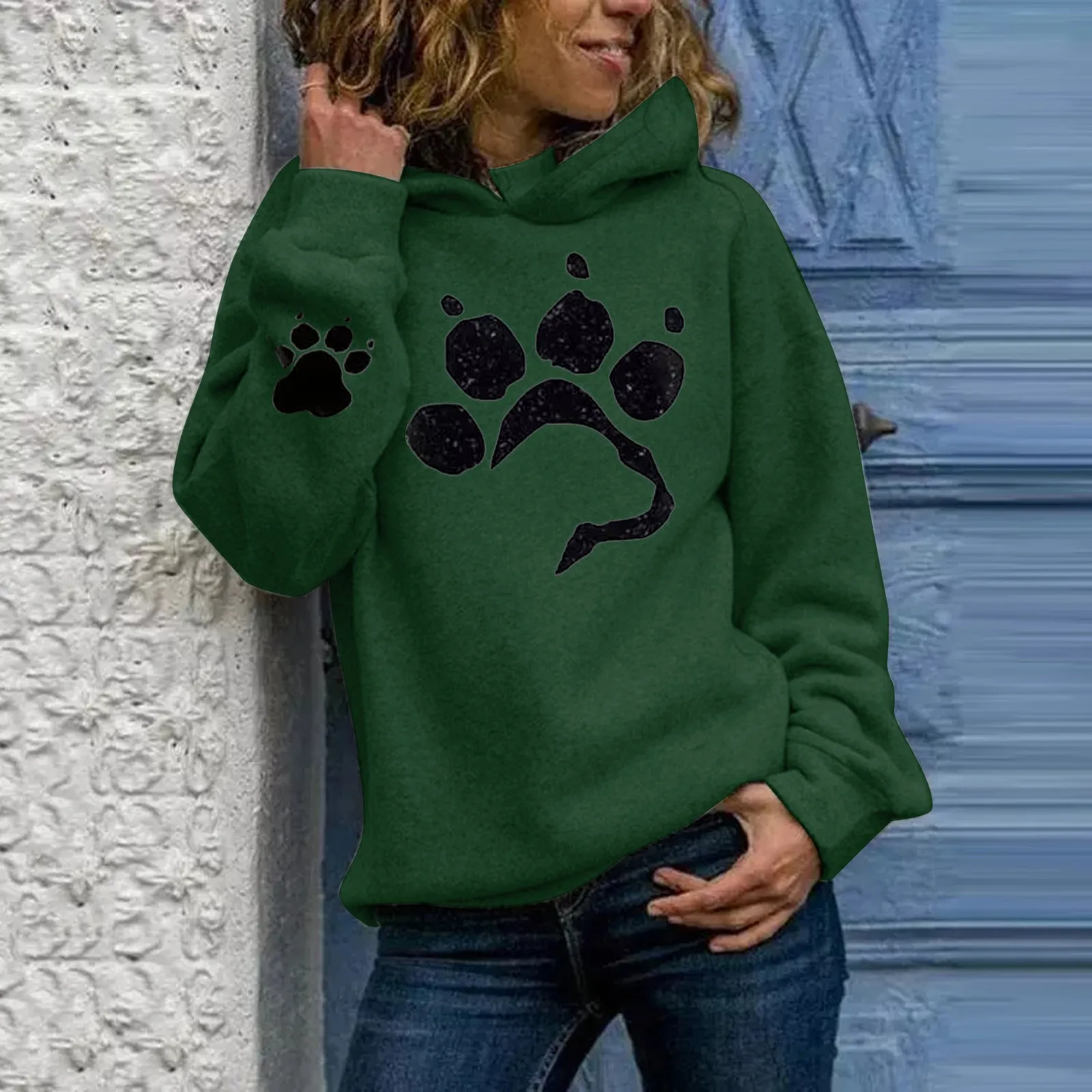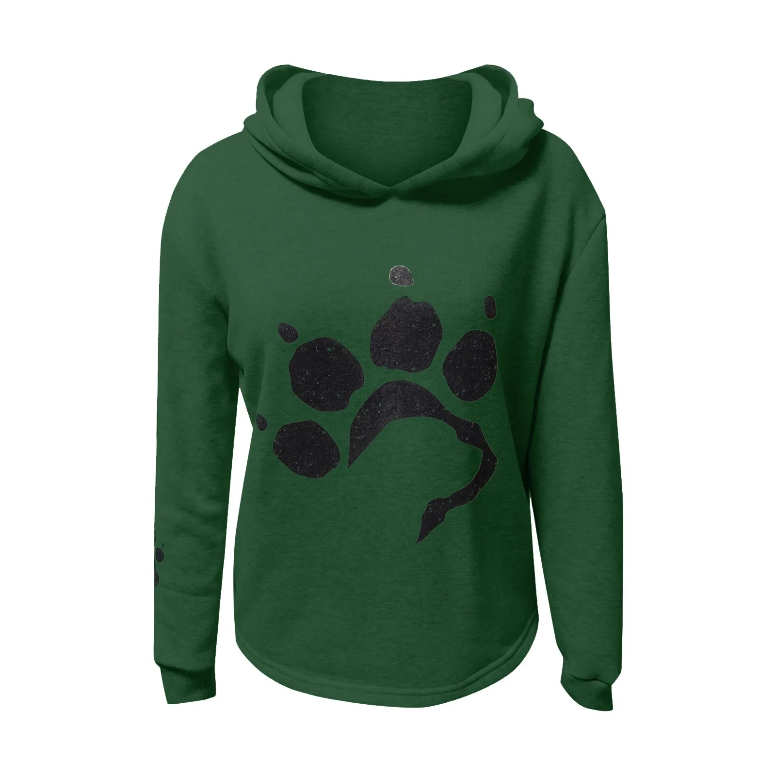 Модная женская толстовка с капюшоном, свитшот, повседневный Свободный пуловер с длинными рукавами и принтом кошачьей лапки, Женский свитшот из тонкого флиса с капюшоном