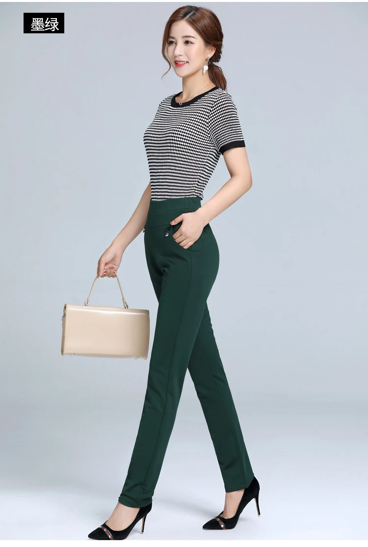 Женские брюки 2020 весна осень размера плюс прямые брюки Тонкий Повседневная Женская обувь обтягивающие брюки; Цвет Черный; Модные джинсы офисные брюки