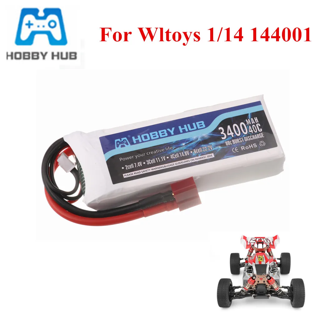 Литий-Полимерный Аккумулятор 7,4 В, 3400 мАч для Wltoys 114 144001, запасные части для радиоуправляемых машинок, лодок, аккумулятор 2s 7,4 В для Wltoys 144001
