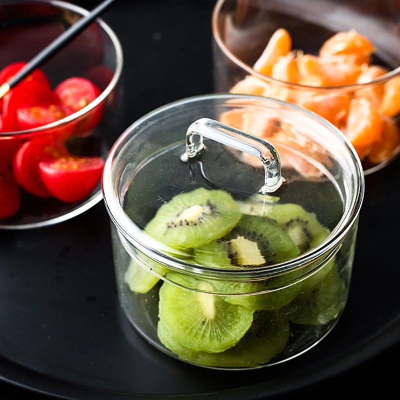 Трехслойная стеклянная чаша, Штабелируемая, для салата с крышкой, прозрачный контейнер для фруктов, креативный, термостойкий