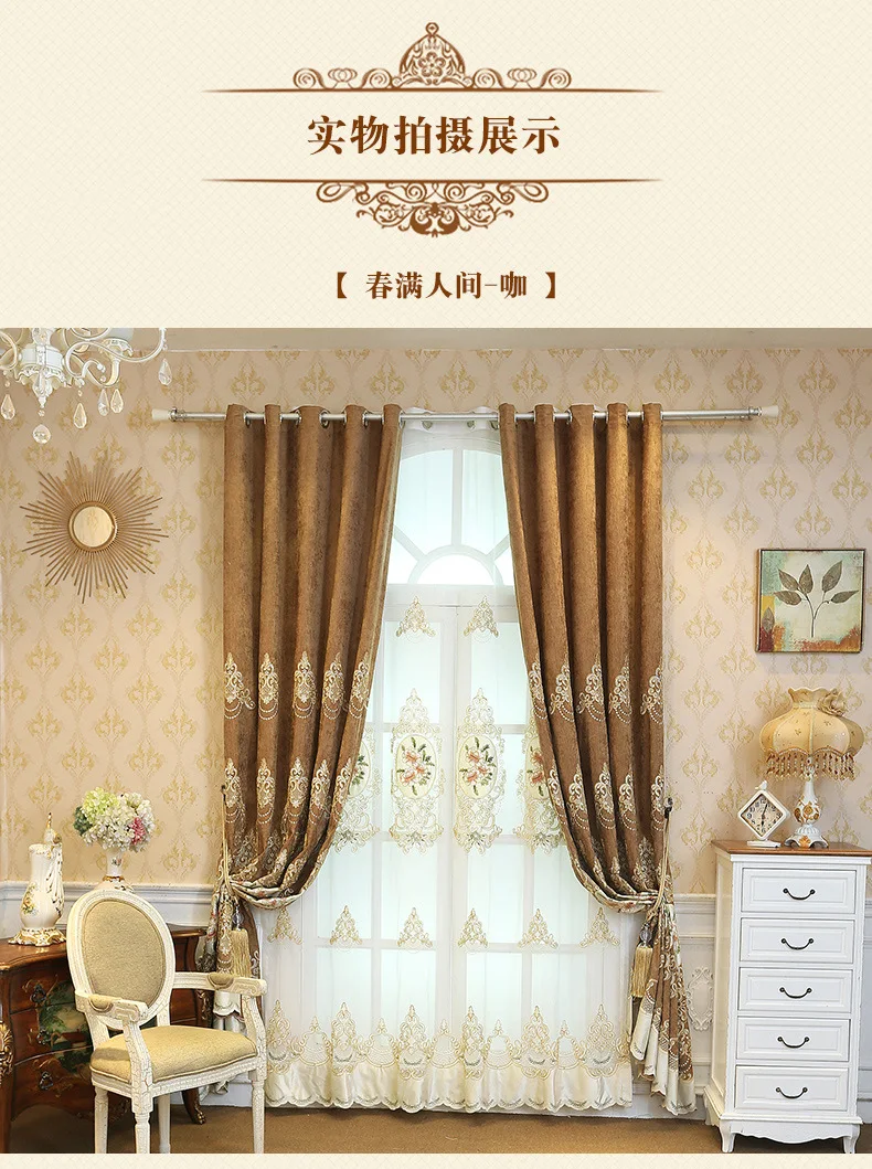 Европейские Роскошные Синие шенильные шторы с вышивкой для гостиной, спальни, высококачественные шторы для виллы, прозрачные тюлевые шторы с цветами