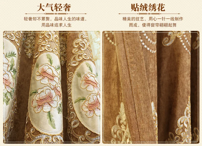 Роскошные коричневые шенильные занавески в европейском стиле, прозр...