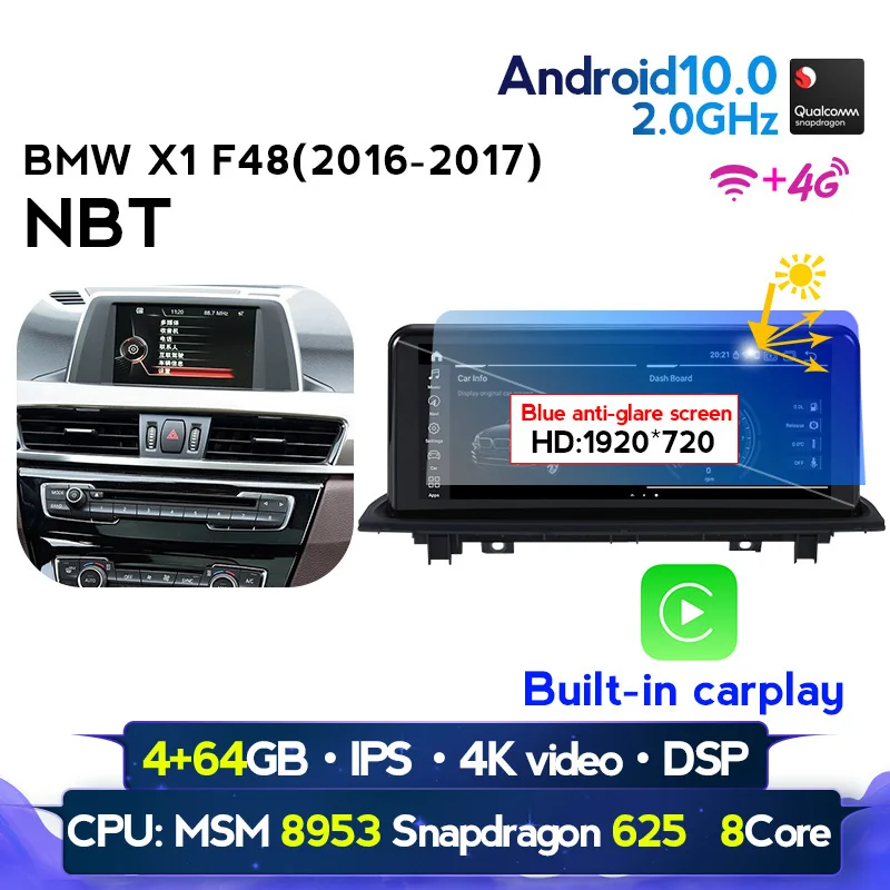 NaviFly 1920*720 синий антибликовый экран беспроводной carplay Android 10 автомобильный мультимедийный плеер для BMW X1 F48 2016 2017 NBT системы