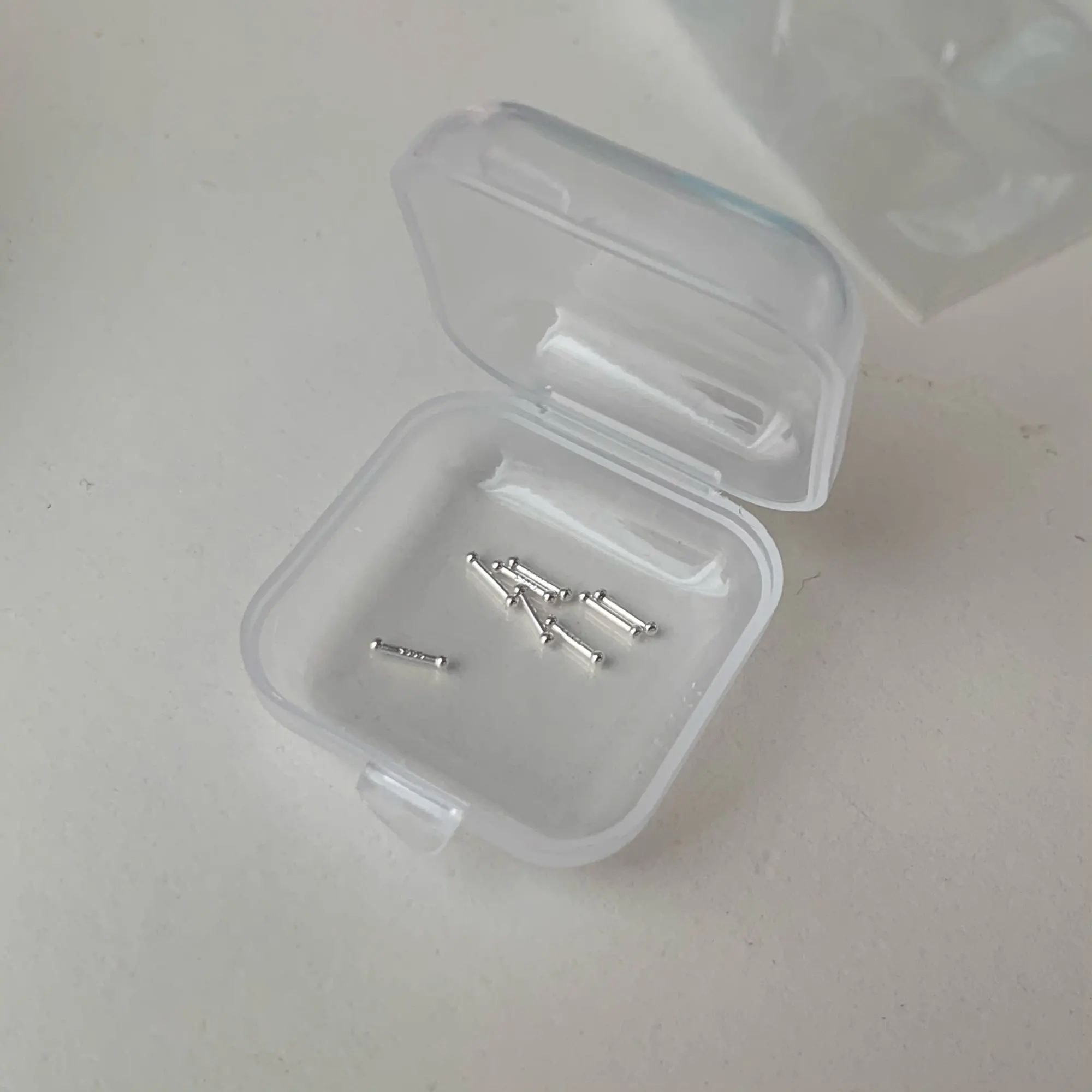 Не ожидала, что будут такими крохотными. Очень легко их можно потерять, нужно быть аккуратнее. Брала для проколов хрящей, но носить их не смогу, так как отверстия больше для этих серёжек (правда, серёжками назвать их тяжело). А вот для мочек подошли. Не затерялись и за пару дней носки не выпали. В наборе 8 штук. Дошли за 18 дней. Трек отслеживался до почтового отделения.