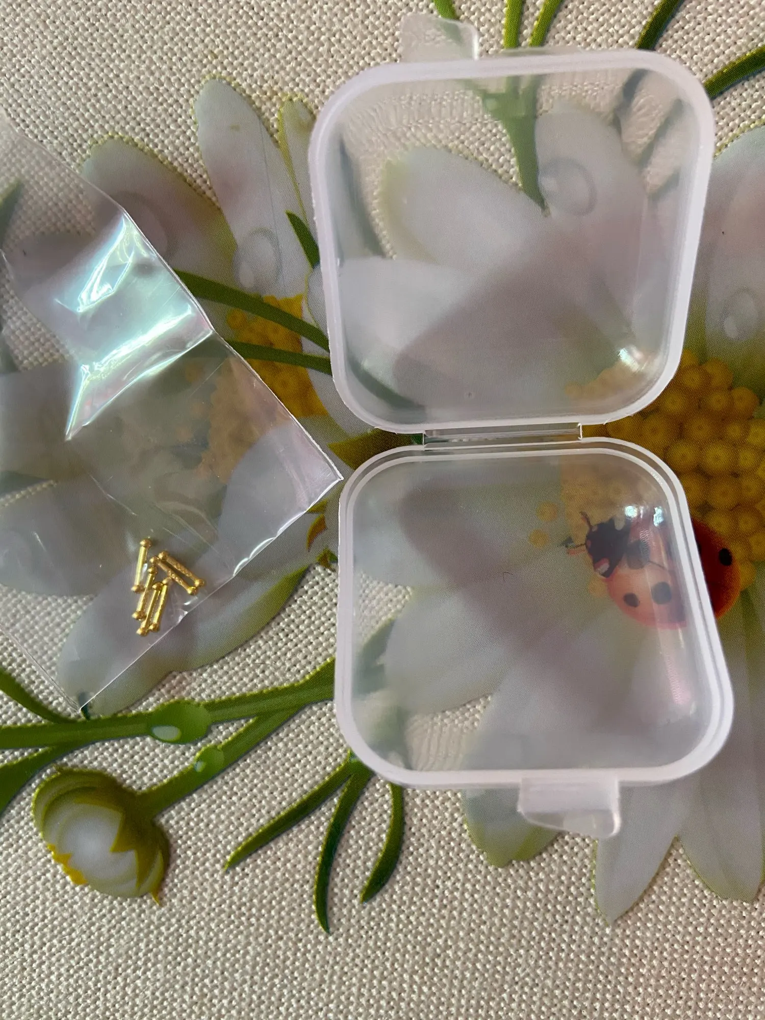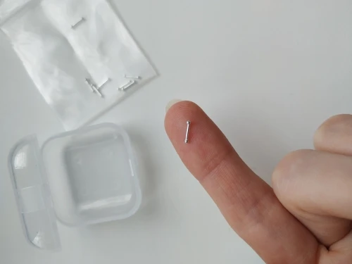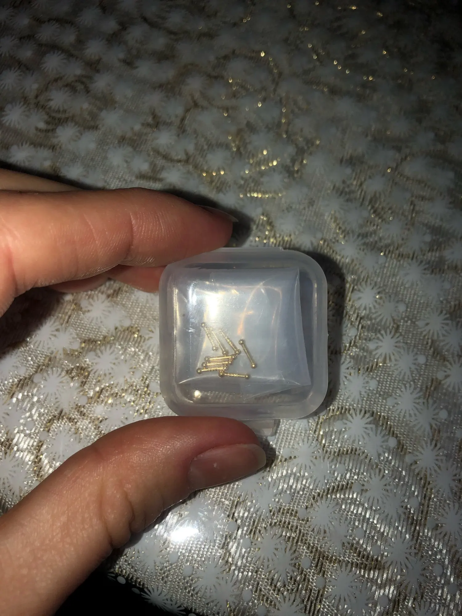 Я конечно читала что они маленькие, но они прям очень маленькие))) После стерилизации попробую надеть, но думаю они затеряются где-то в пространствах уха) Даже не знаю откручиваются ли, так как даже у меня пальцы оказались слишком толстыми чтобы это сделать)
