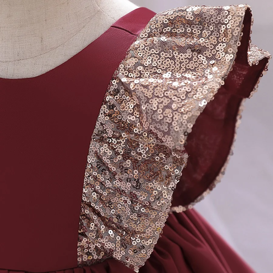 Новый детский день рождения блестками помпезный и оборками нарядное платье для маленьких девочек, платье для причастия ужин первого; Торжественное платье принцессы; Праздничное платье с бантиком dress012345