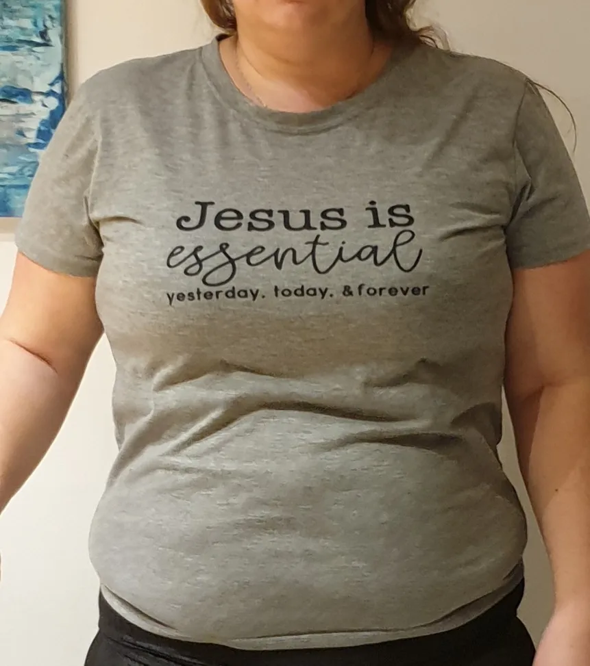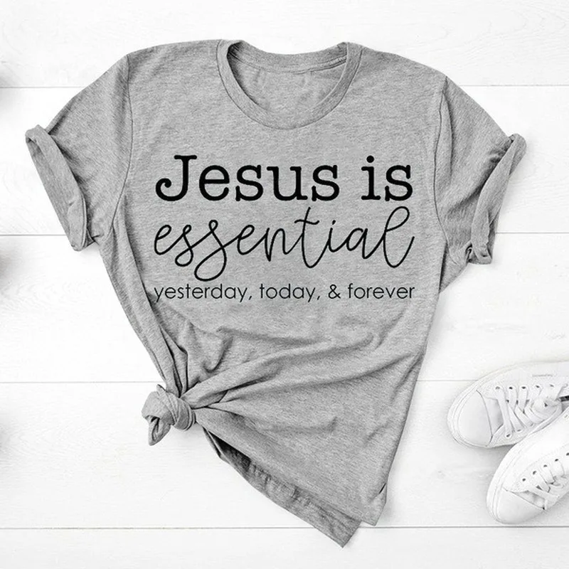 Летняя женская футболка с изображением имени Иисуса и названий выше...