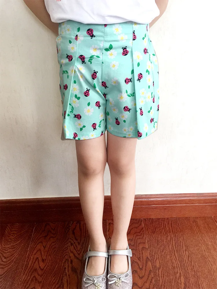Шорты синтетика, бантик на булавке, цвет как на фото, шли в Калининград две недели. На худенькую девочку 110 рост и 18,5 кг, очень большие, думаю через год подойдут.