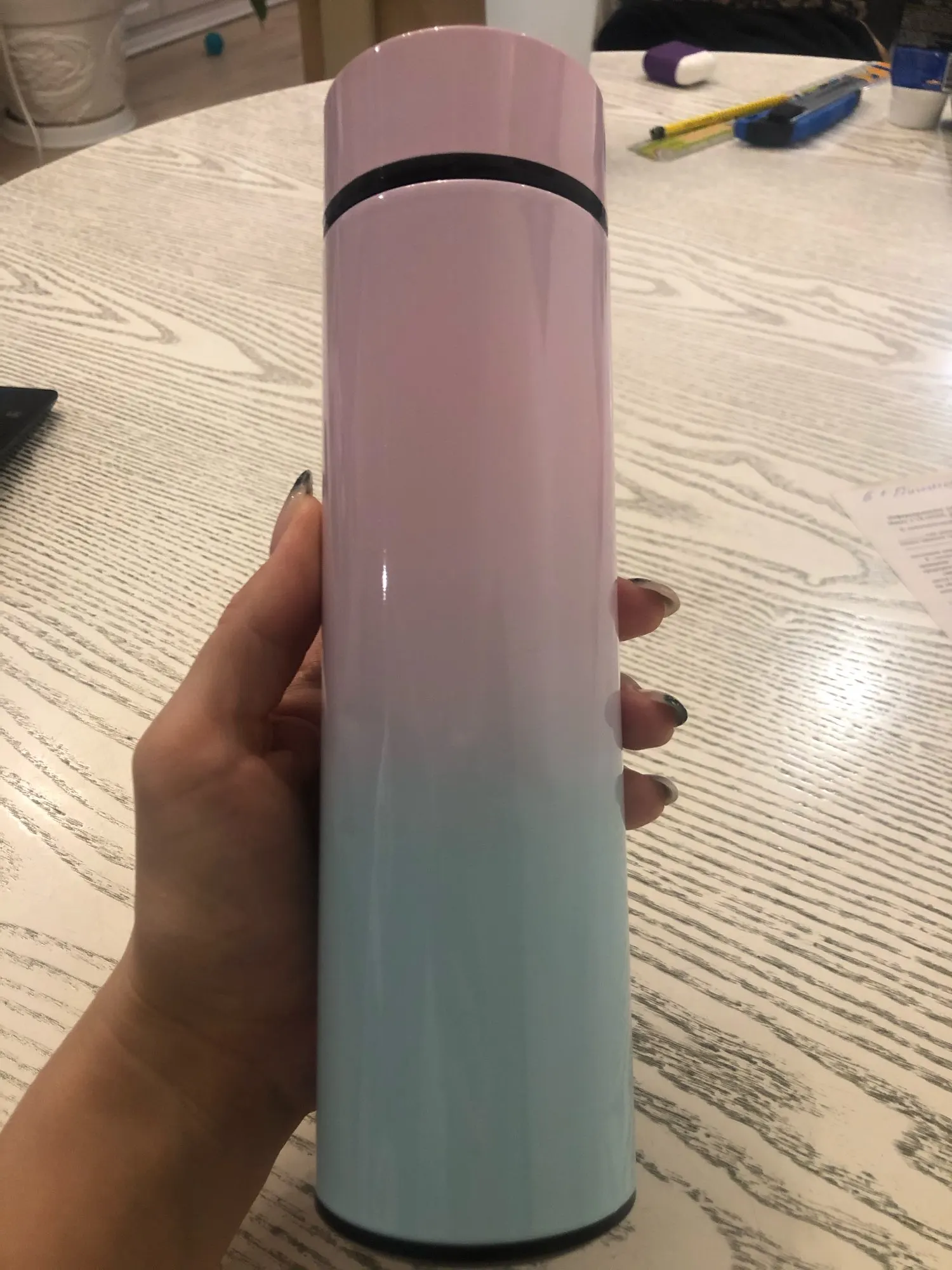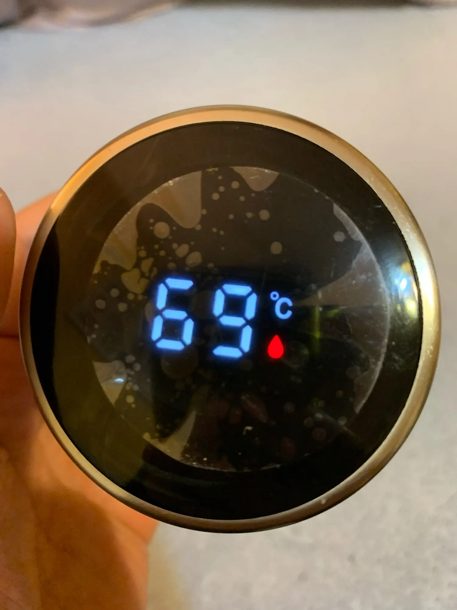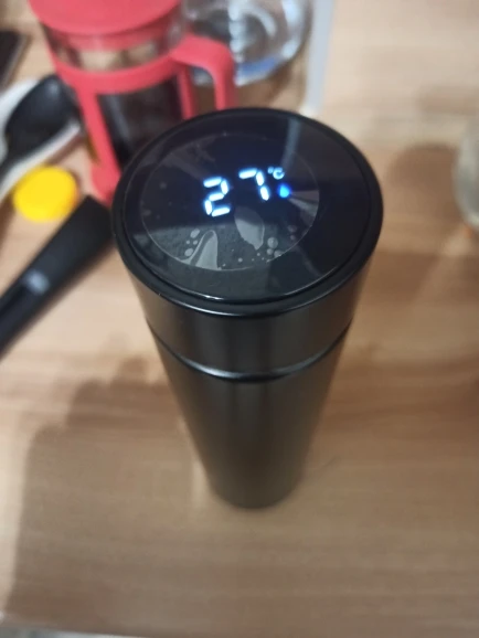 Термос очень красивый, удобный, доставили очень быстро всего 2 недели. Но тут тоже есть не достатки, я его взял из-за сенсора который температуру показывает, меня он очень заинтересовал, но он работает очень криво. По началу он показывал температуру как прижмешь руку, но после того как я его брал пару раз на работу, он не показывал уже температуру как руку прикладывал. Думал что поломался уж, но потом он стал вновь работать но криво, то просто мерцал без перерыва, то просто не показывал температуру, то вновь нормально работает. Температуру он показывает точно пока не выльешь половину термоса, как выливаешь он показывает на 10 градусов ниже. Допустим он показывает 80 градусов, выливаешь половину, он уже показывает 65, хотя на деле там должно быть 80. Вообщем итог такой, сенсор работает криво температуру он держит часов 8 не больше, термос сам маленький, мне лично не хватает, но это уже моя ошибка что не посмотрел миллилитраж