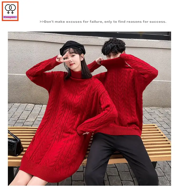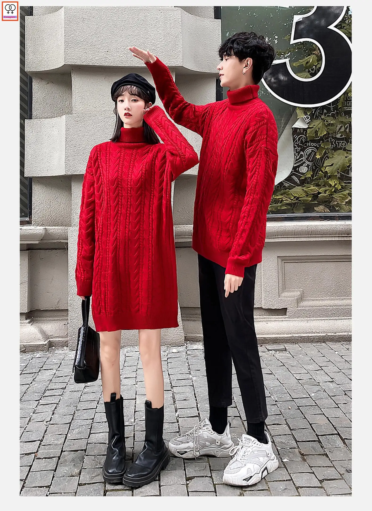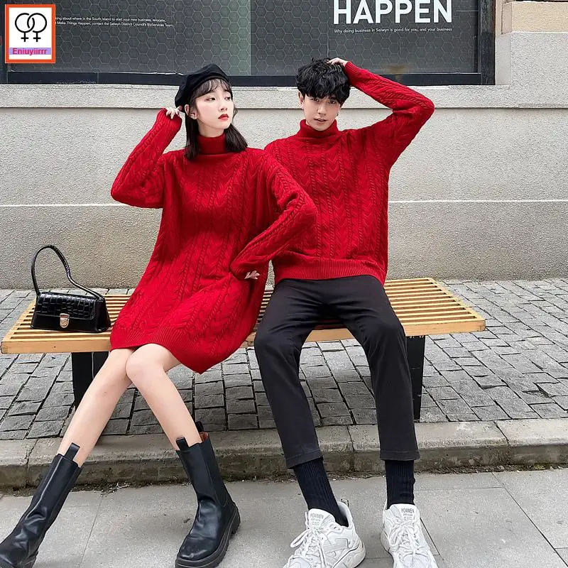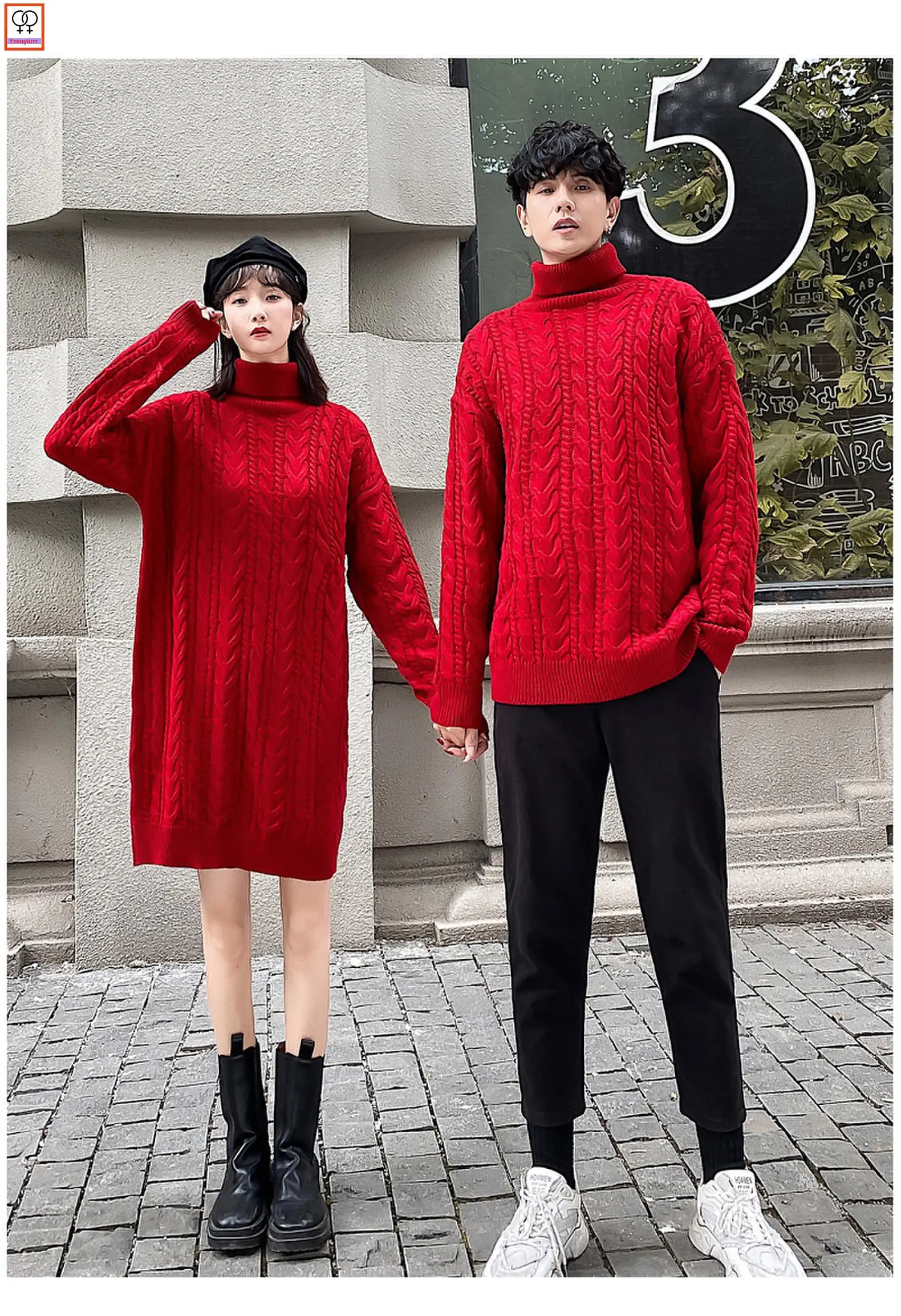Одинаковая одежда для пар Женская, мужская, для рождественской вечеринки Святого Валентина Парень Девушка Повседневное свободное платье красный свитер с высоким, плотно облегающим шею воротником