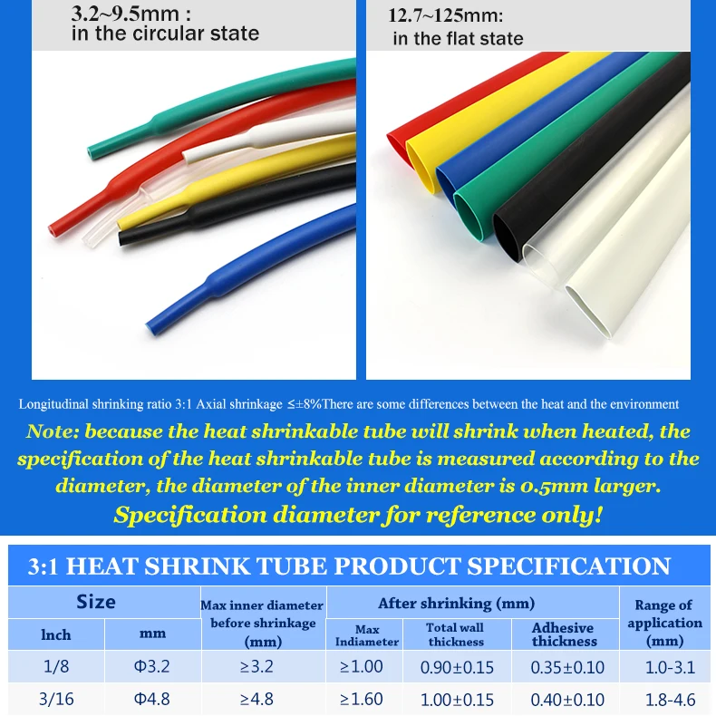 Термоусадочная трубка с клеем 1 млот 3:1, двухслойная трубка диаметром 1,62,43,24,86,47,99,512,7 мм, обмотка на клейкой подкладке