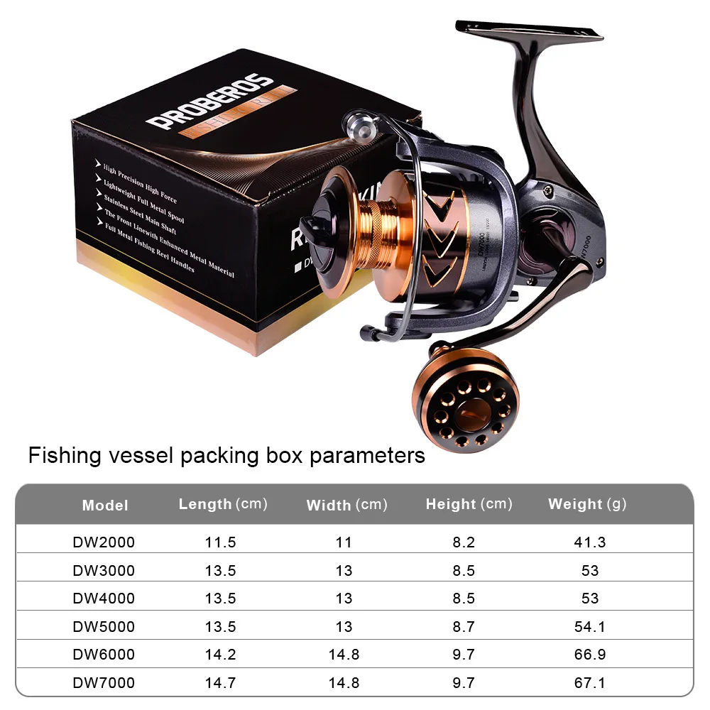 Спиннинговая катушка PROBEROS, максимальное усилие тяги 11-21 кг, Рыболовная катушка серии 2000-7000, механическая металлическая катушка с ЧПУ