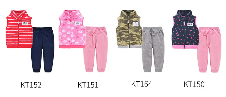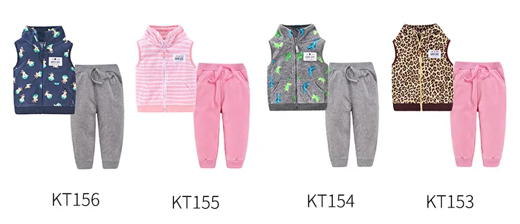 Комплекты одежды для малышей, осенний Новый Повседневный мультяшный флисовый жилет без рукавов на молнии + штаны, верхняя одежда для малышей, спортивный костюм для детей От 1 до 3 лет