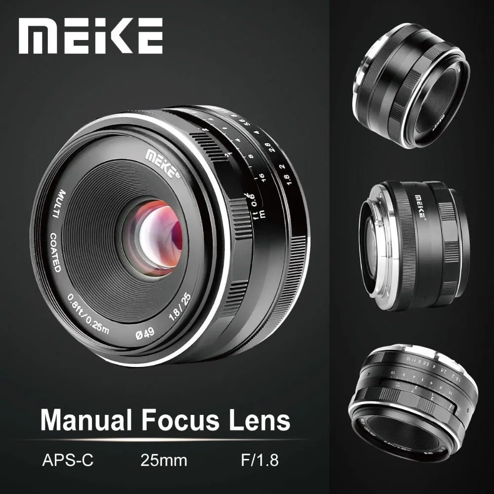 Объектив Meike для камеры 25 мм F1.8, широкоугольный объектив для CanonNikonSonyFuji M43, крепление для камеры Panasonic Olympus