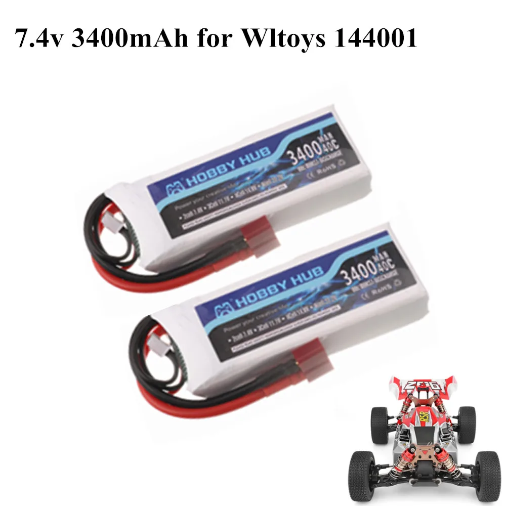 Оригинальный литий-полимерный аккумулятор 144001 для автомобиля 2s, 7,4 В, 3400 мАч, T-образный разъем для Wltoys 1/14 144001, литий-полимерный аккумулятор для радиоуправляемого автомобиля, лодки, 1-5 шт.