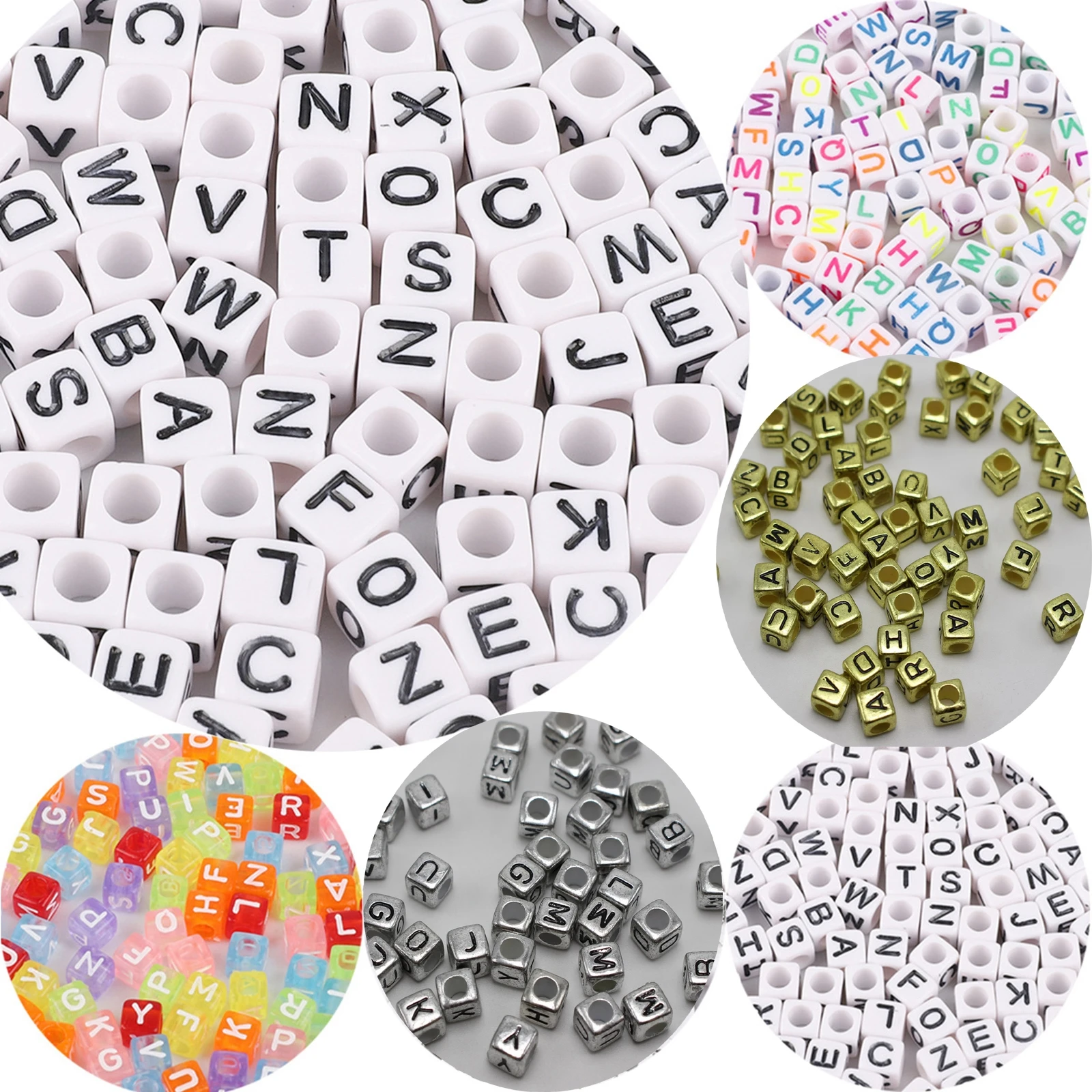 100 шт. 6 х6 мм акриловые бусины 100 шт. квадратные буквы алфавита ...