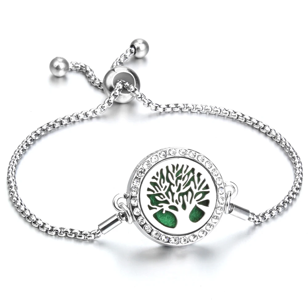 Ювелирные изделия для ароматерапии, браслет с диффузором эфирного масла, регулируемая цепочка, браслет с кристаллом Древо жизни, Ароматический диффузор для духов