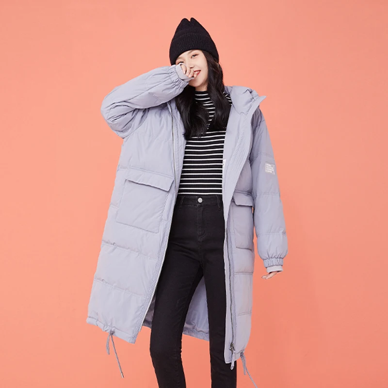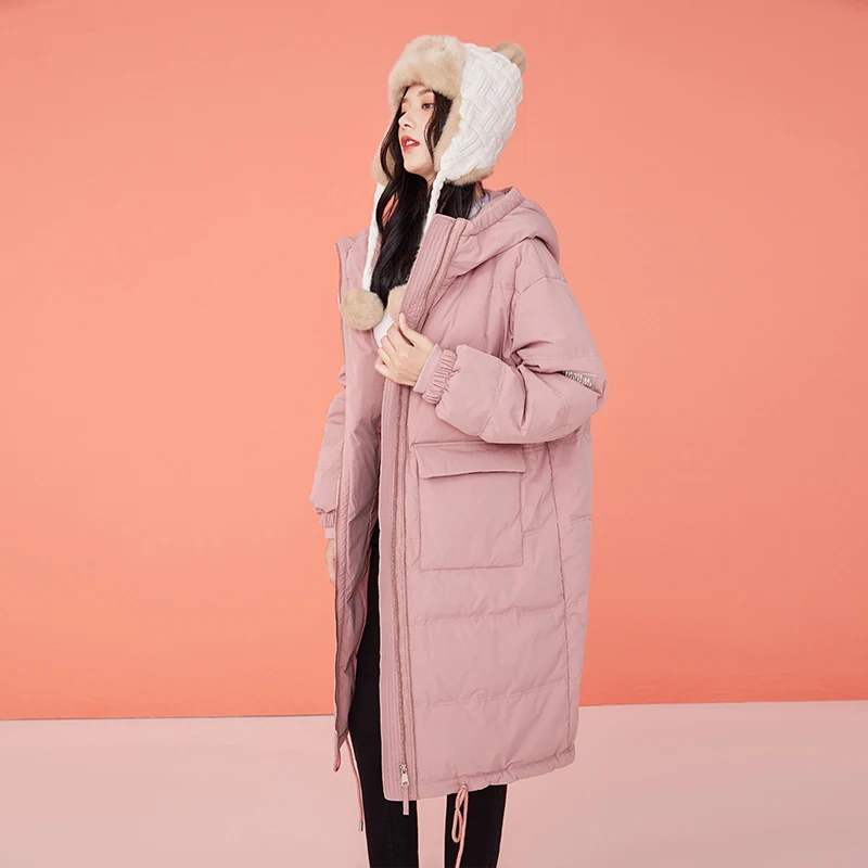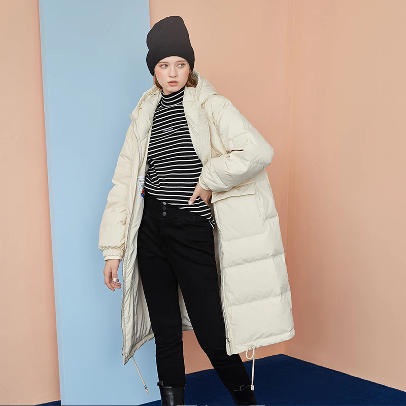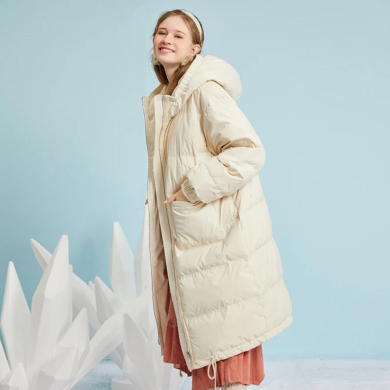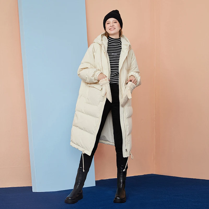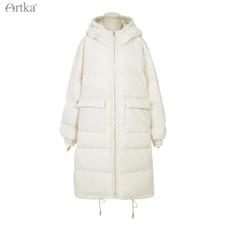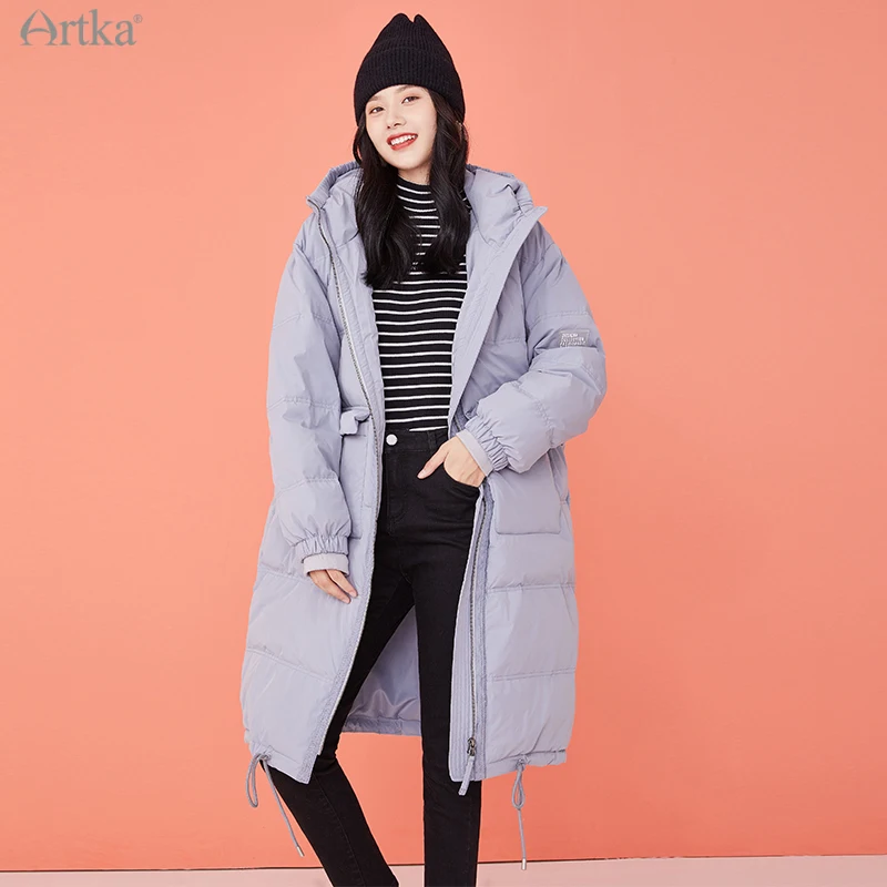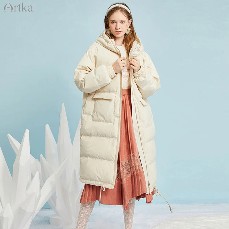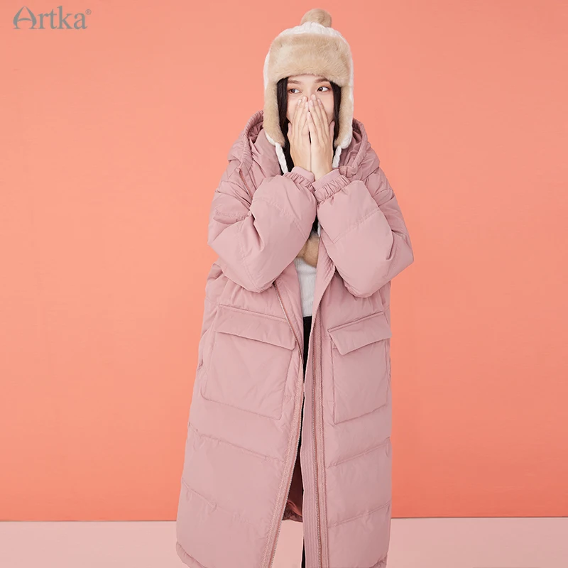 ARTKA 2020 Зимний новый женский пуховик Модный повседневный 4 цвета 90% белый утиный пух пальто свободная Длинная Верхняя одежда с капюшоном ZK22007D