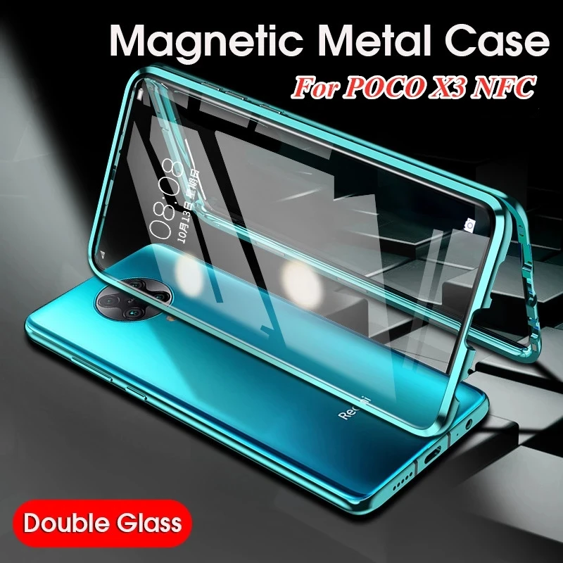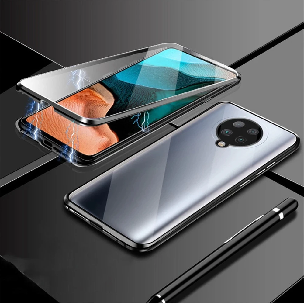 Магнитный Прозрачный чехол для POCO X3 NFC, двухсторонний стеклянный защитный чехол с металлической рамкой для Xiaomi 10 10Pro