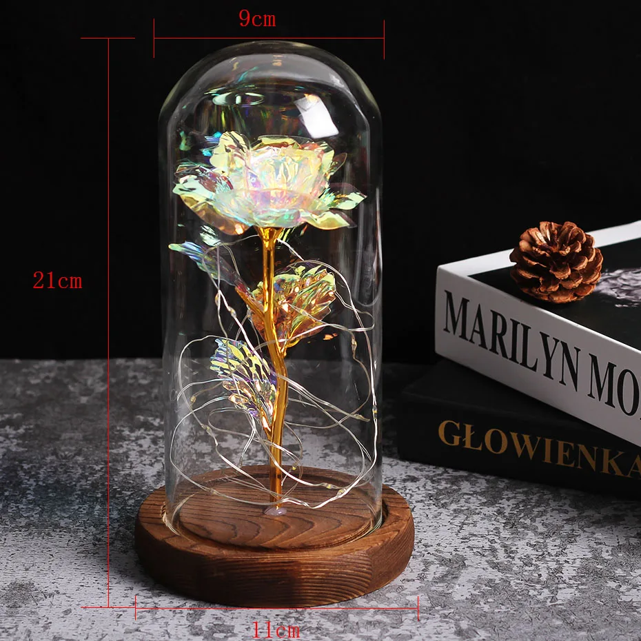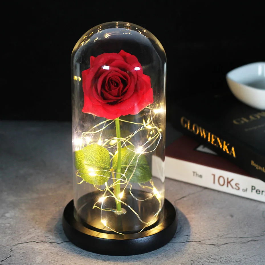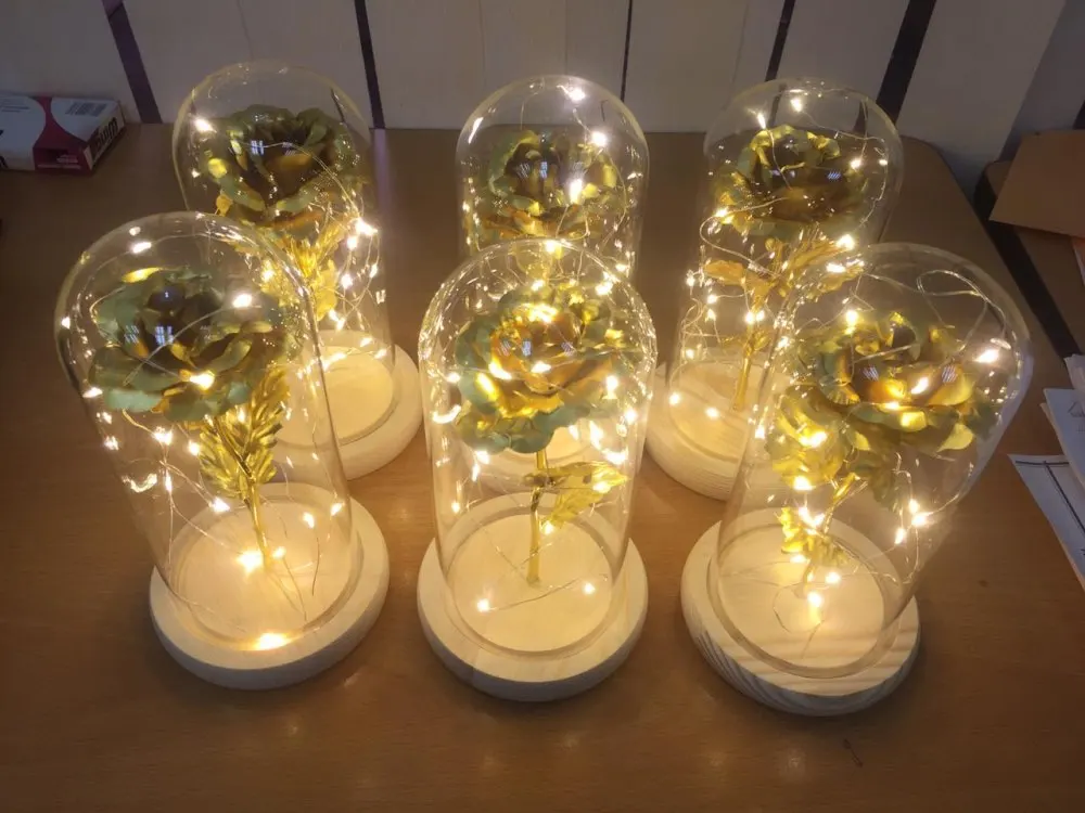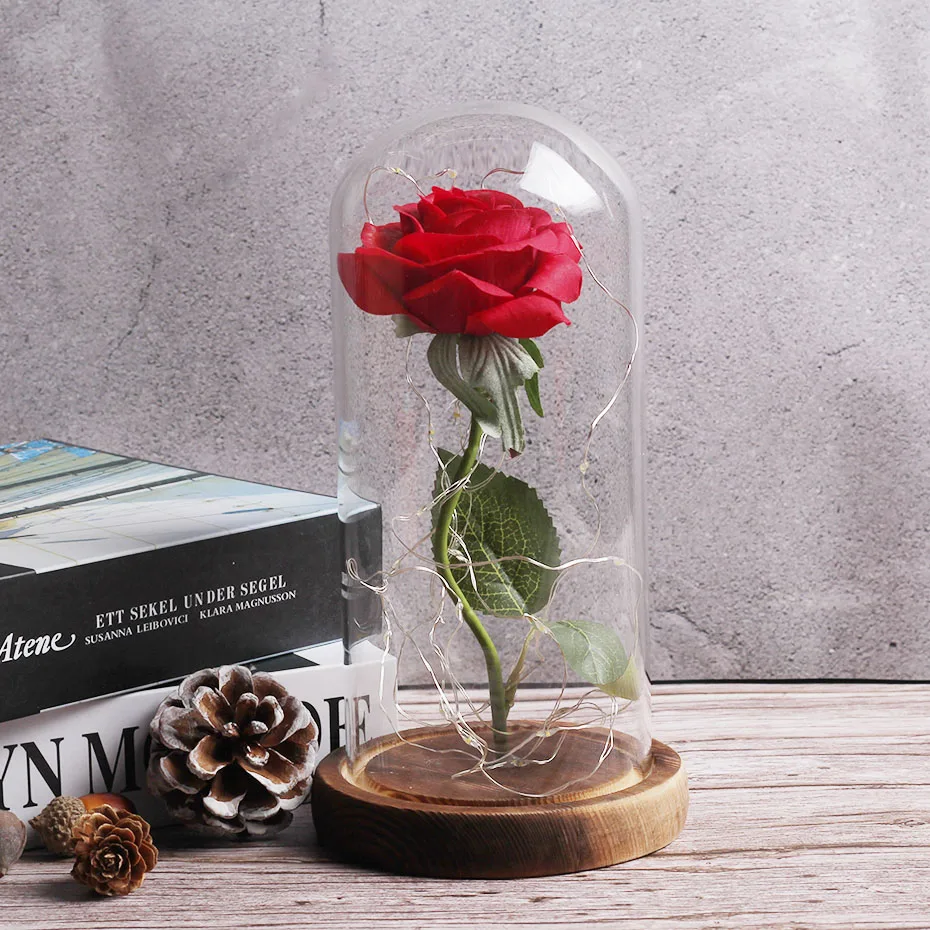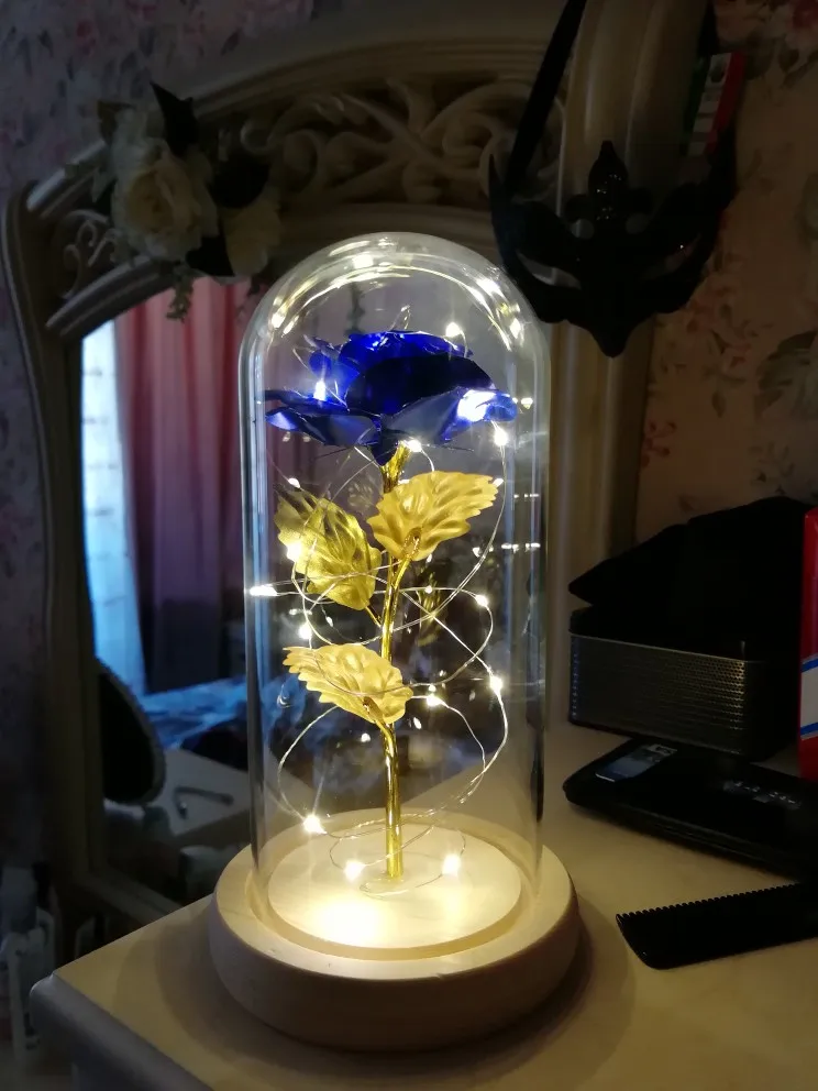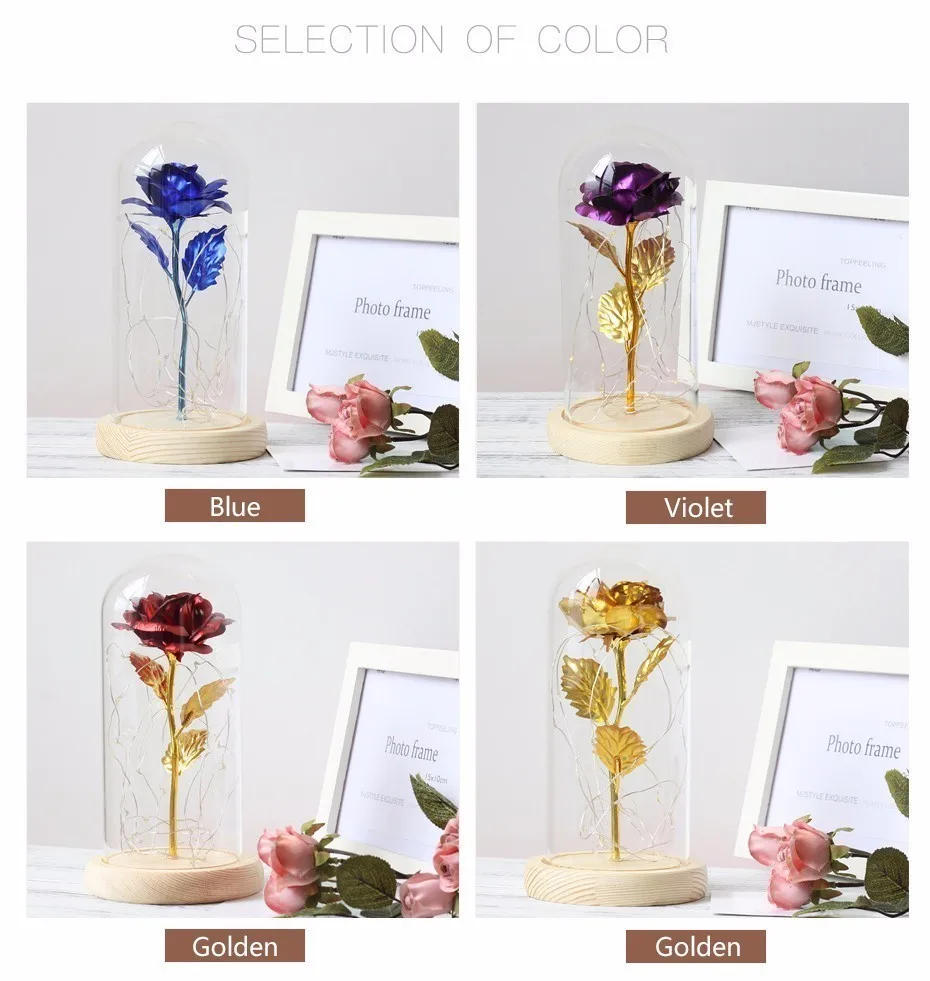 Горячая Красота и с рисунком из мультфильма Красавица и Чудовище позолоченный красная роза с светодиодный светильник в Стекло купол для Свадебная вечеринка День Святого Валентина подарок на день матери