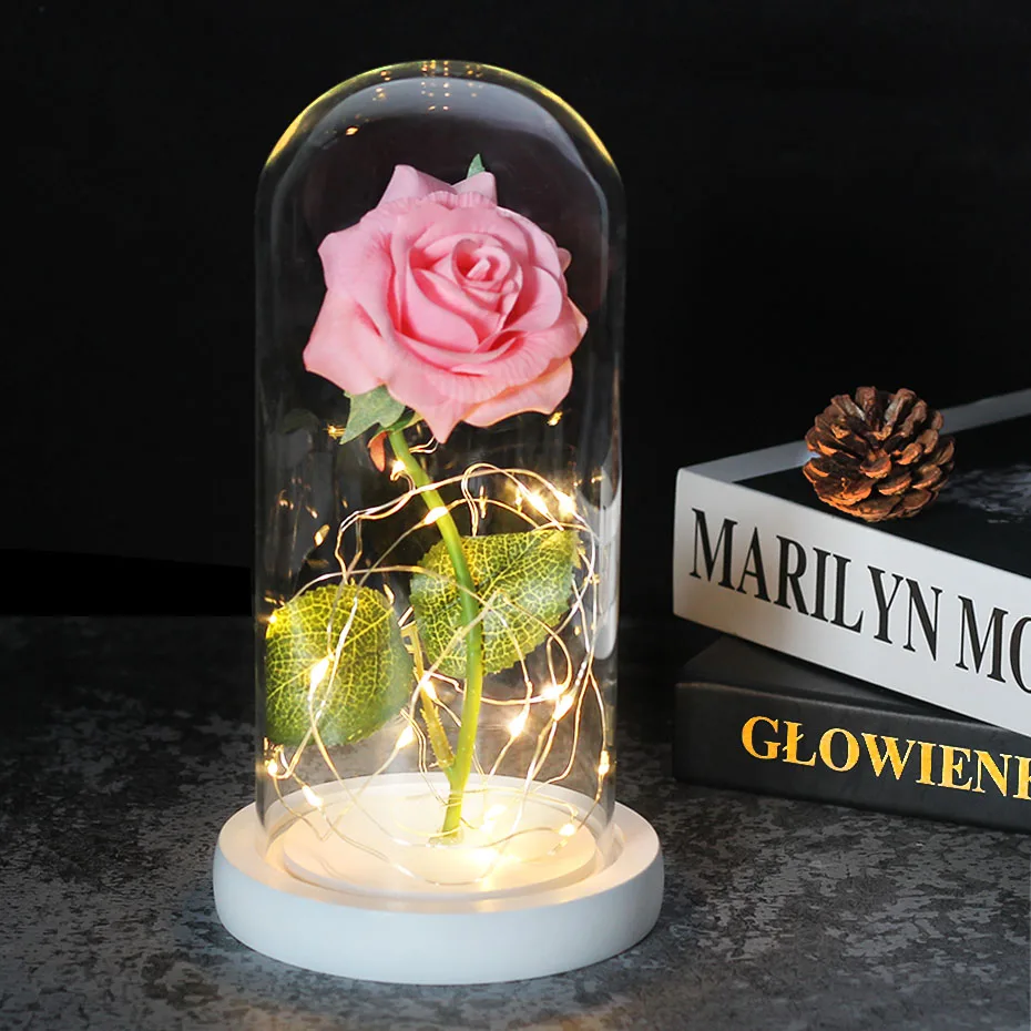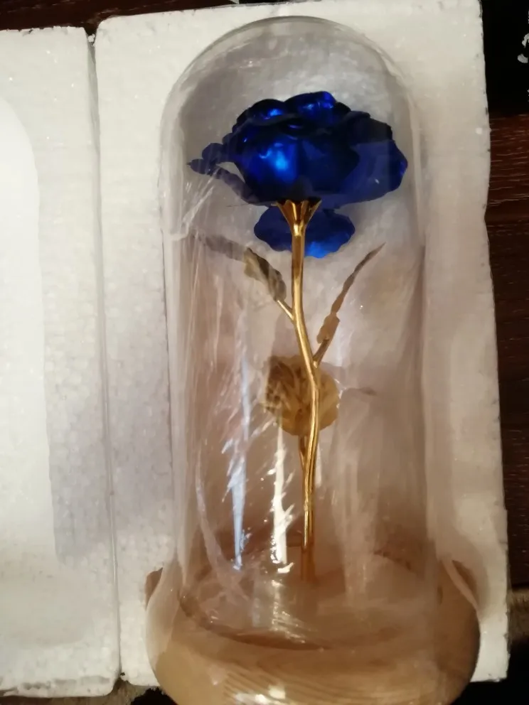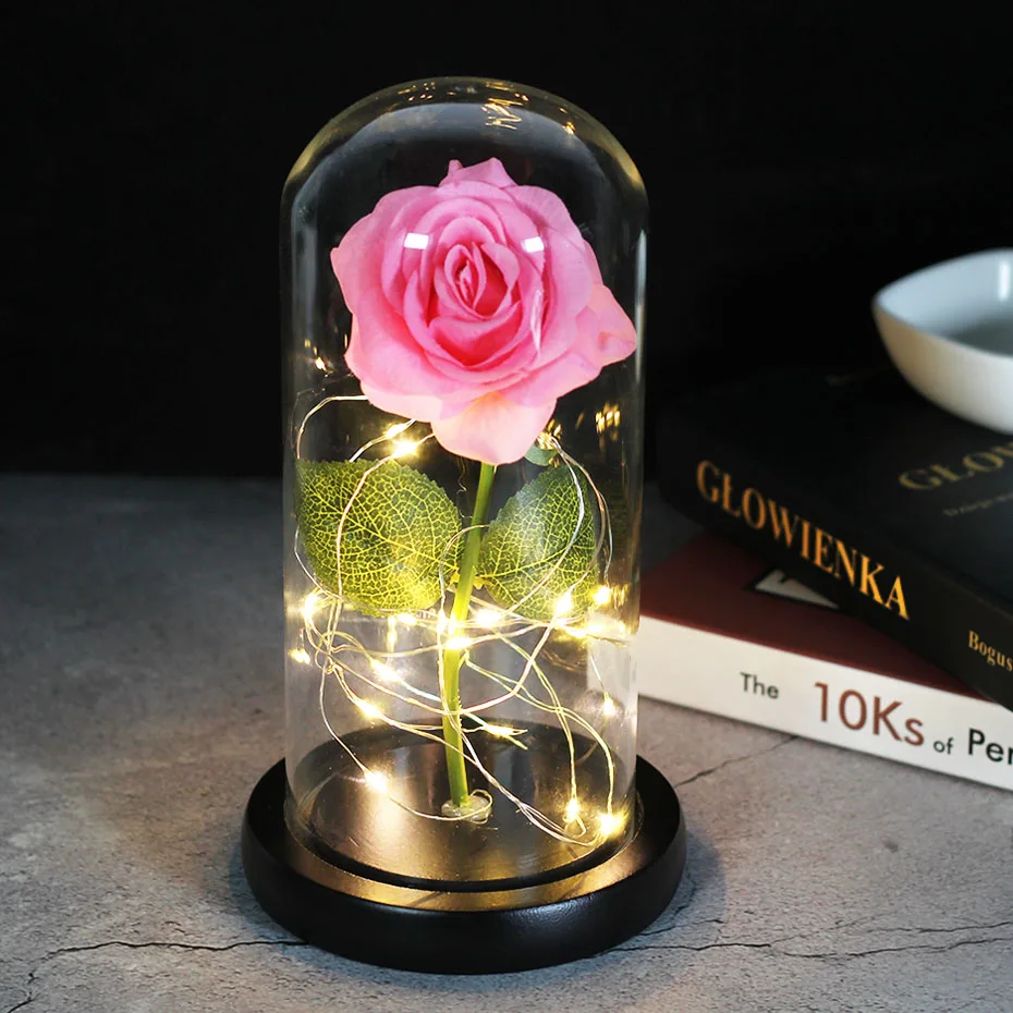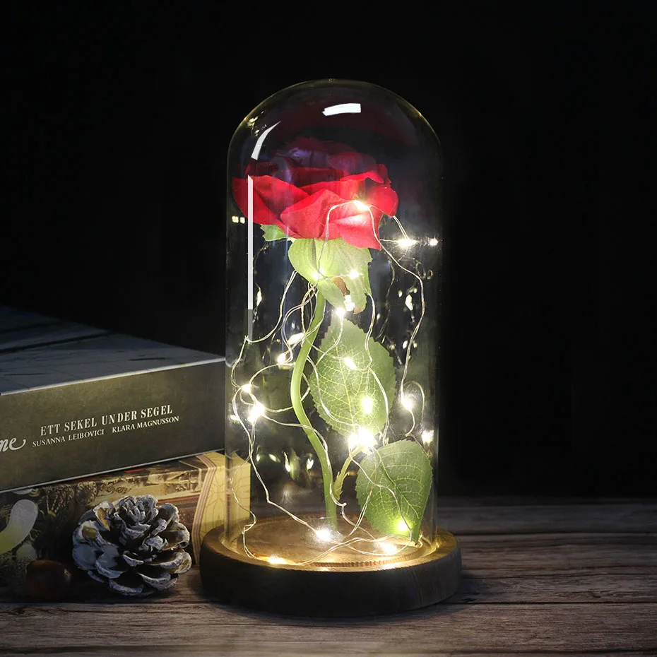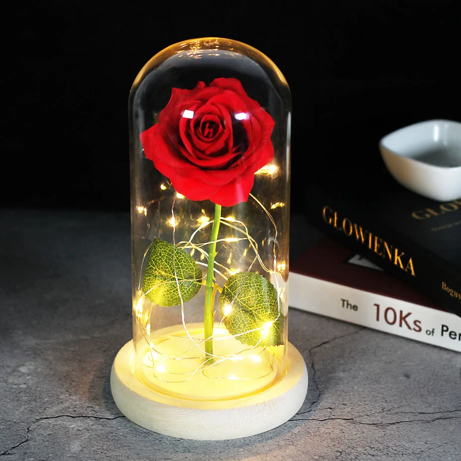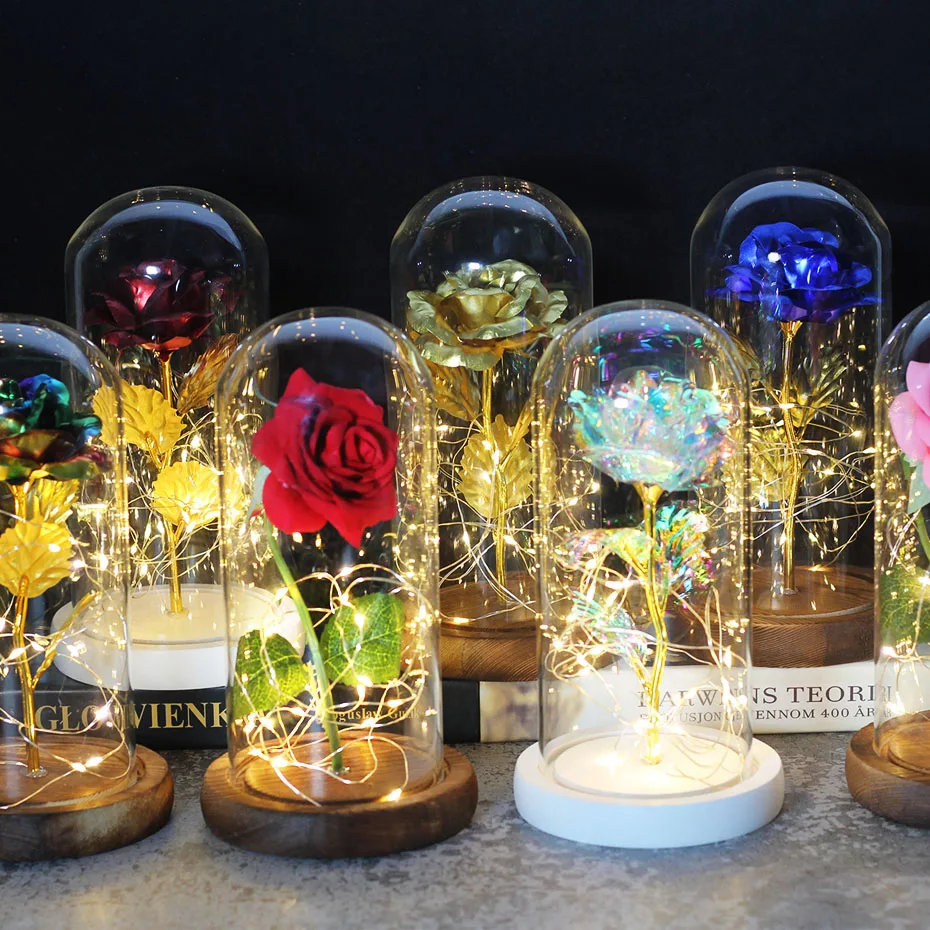 Горячая Красота и с рисунком из мультфильма Красавица и Чудовище позолоченный красная роза с светодиодный светильник в Стекло купол для Свадебная вечеринка День Святого Валентина подарок на день матери