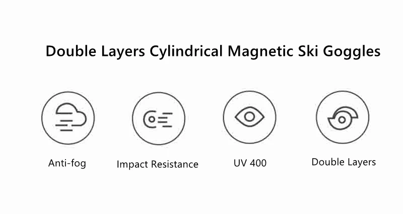 Лыжные очки двухслойные с магнитной UV400 Анти-туман большие сферические лыжные очки