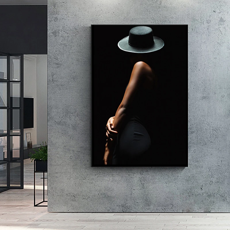 Современное Сексуальное Женское художественное боди на черном фоне, печать на холсте, плакаты, настенные картины для гостиной, домашний декор