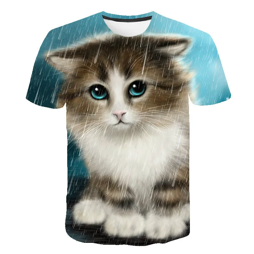 Лето 2020! Детская футболка с мультяшным котом, 3D Рисунок для девочек, Детская уличная одежда, Забавная детская футболка с круглым вырезом, футболка