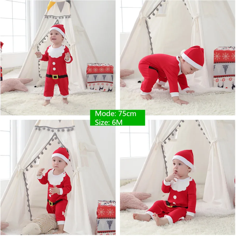 Комбинезоны для маленьких мальчиков и девочек, Детский новогодний костюм красный комбинезон с Санта-Клаусом + шапки, 2 шт хлопковые комплекты для новорожденных 0-24 месяцев