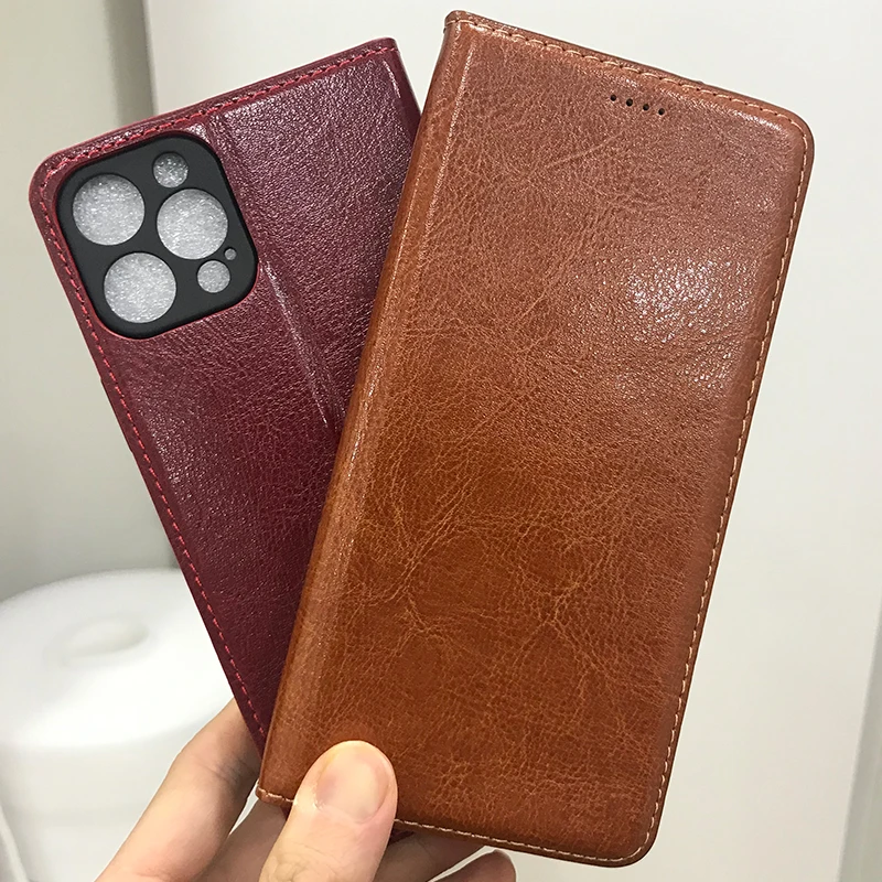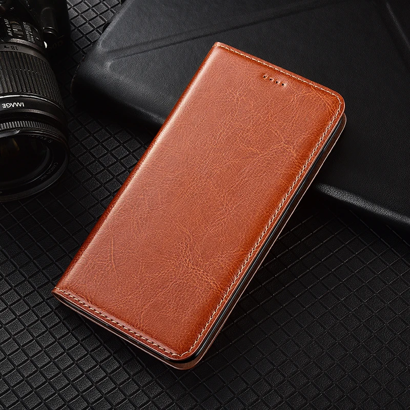 Magnet Natural Genuine Leather Skin Flip Wallet Book Phone Case Cov...