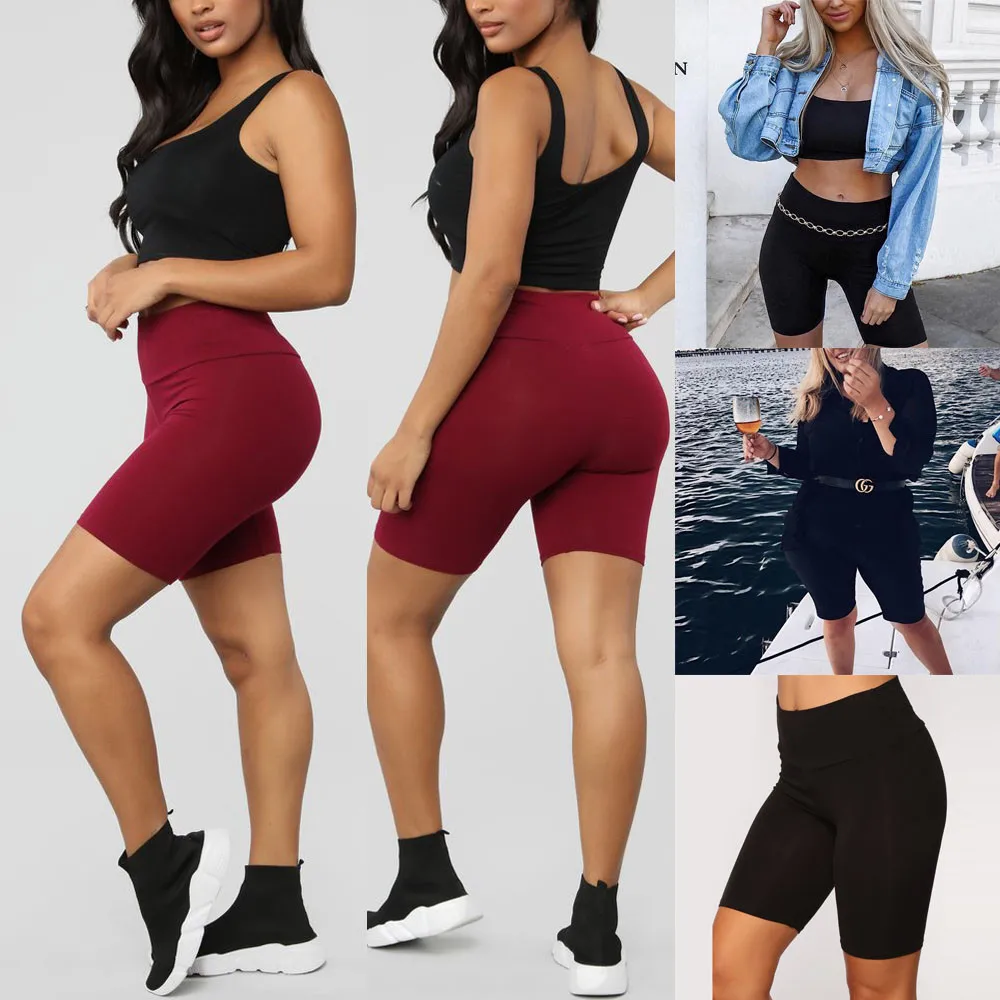 Новые женские спортивные шорты для тренировок, тренажерного зала, леггинсы для фитнеса, летние модные эластичные шорты с высокой талией, спортивная одежда