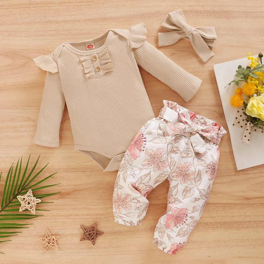 3 шт., Детский комбинезон с длинным рукавом, штаны с цветочным прин...