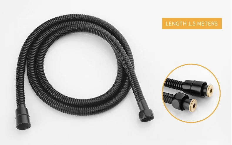 Черный латунный ручной душ круглой формы с дополнительным длинным ш...