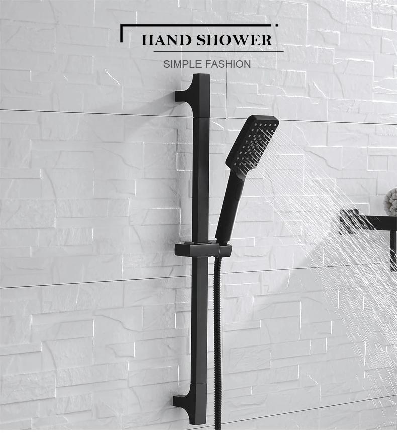 Многофункциональный квадратный ручной душ с насадкой для душа, набор для очистки с направляющей и шлангом для душа, черный