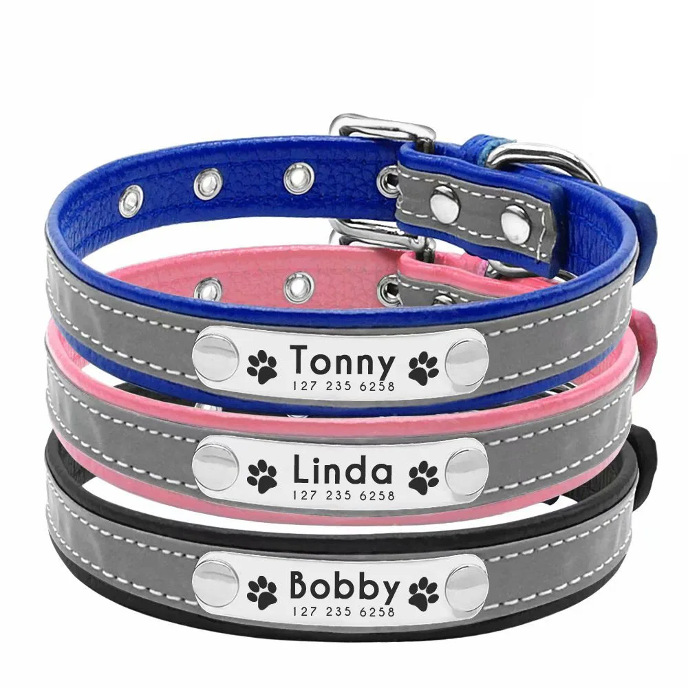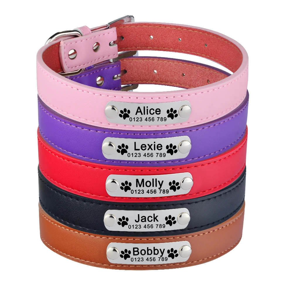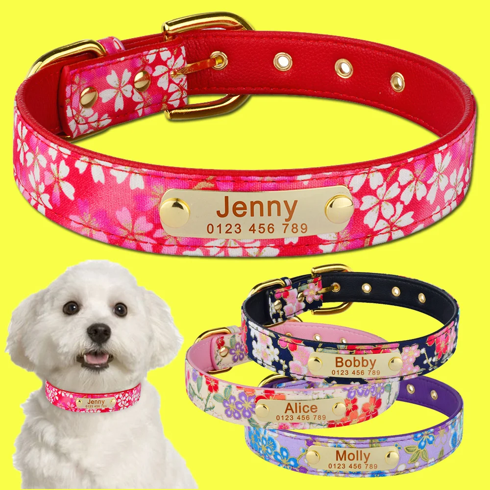 Прочный регулируемый персонализированный ошейник для собак, кожаный ошейник для щенков с именем на заказ, выгравированный именной значок XS L, красивый ошейник для щенков с цветком