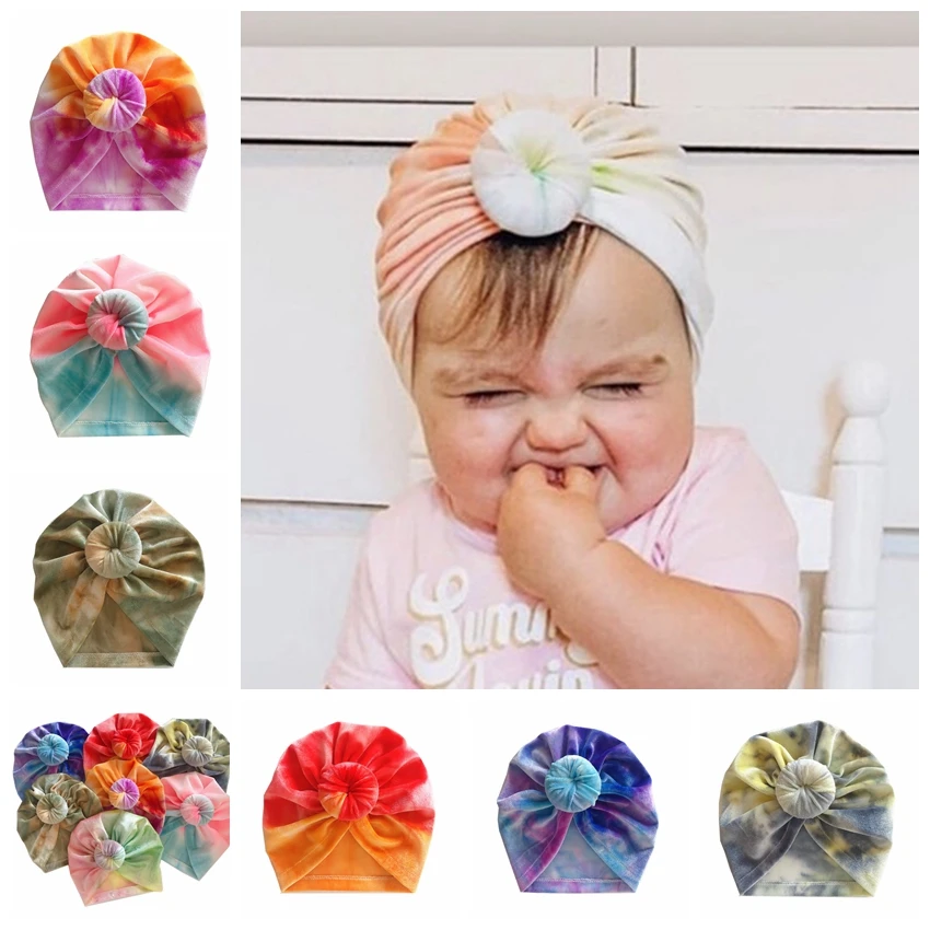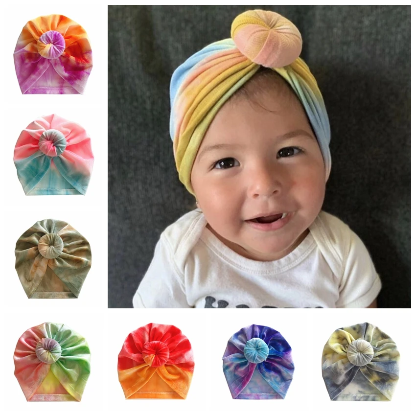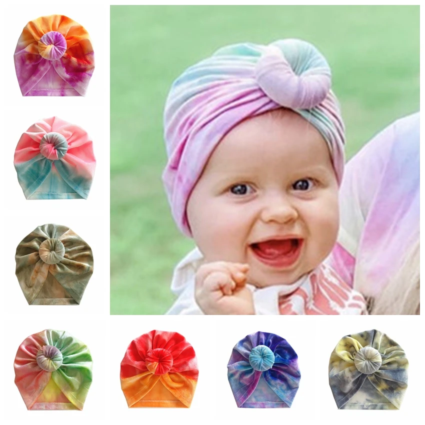 Шапка-тюрбан для новорожденных девочек, цветная шапка с круглым узелком, аксессуары для волос, реквизит для фотосессии