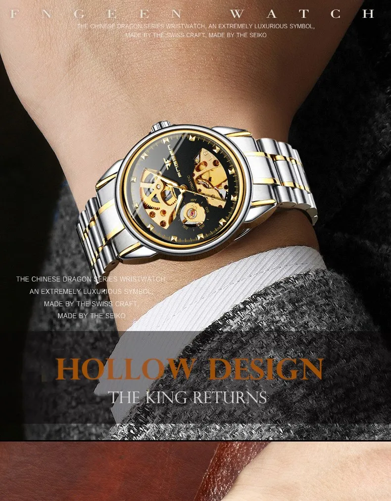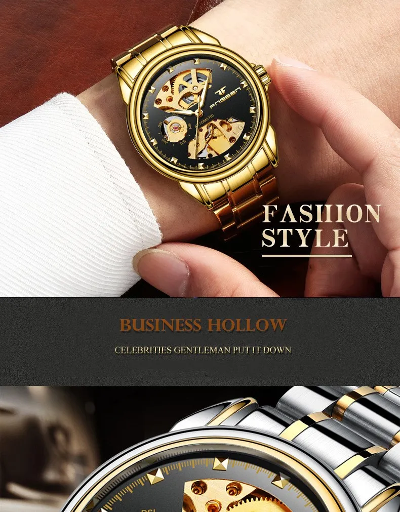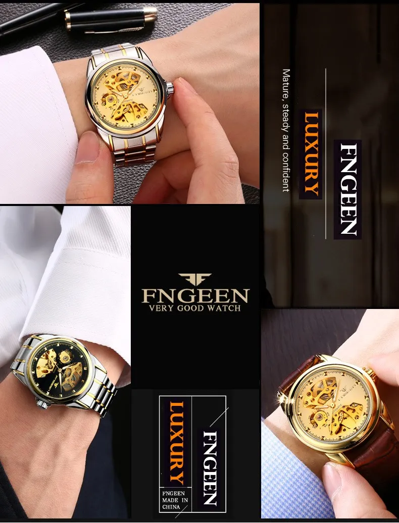 Fngeen наручные часы мужские стальные водонепроницаемые самообветривающиеся автоматическиеМеханические часы Скелет Мужские часы полый турбийонМужские часыБренд: FNGEENМодель: L668Размер циферблатаМужской чехол Диаметр: около 38 мм Толщина: около 15 ммРазмер ремешкаМужской браслет Длина: около 23 см Ширина: Около 2,0 смМеханизм: автоматический механизм самонамоткиМатериал циферблата: указатель из нержавеющей стали, высококачественный минералСапфировое зеркало, римские весыМатериал корпуса: нержавеющая стальМатериал ремешка: высококачественный импортный стальной ремешок, натуральнаяКожаный ремешок, складная застежка с безопасностиПеро: модный, роскошный, военный, Деловой, ПовседневныйВес: мужская модель около 120 гОписание функции: Дисплей 12 часов, светящийся, календарьВодонепроницаемый: 30 м водонепроницаемыйПол: мужские часыПосылка: часы-1 шт.