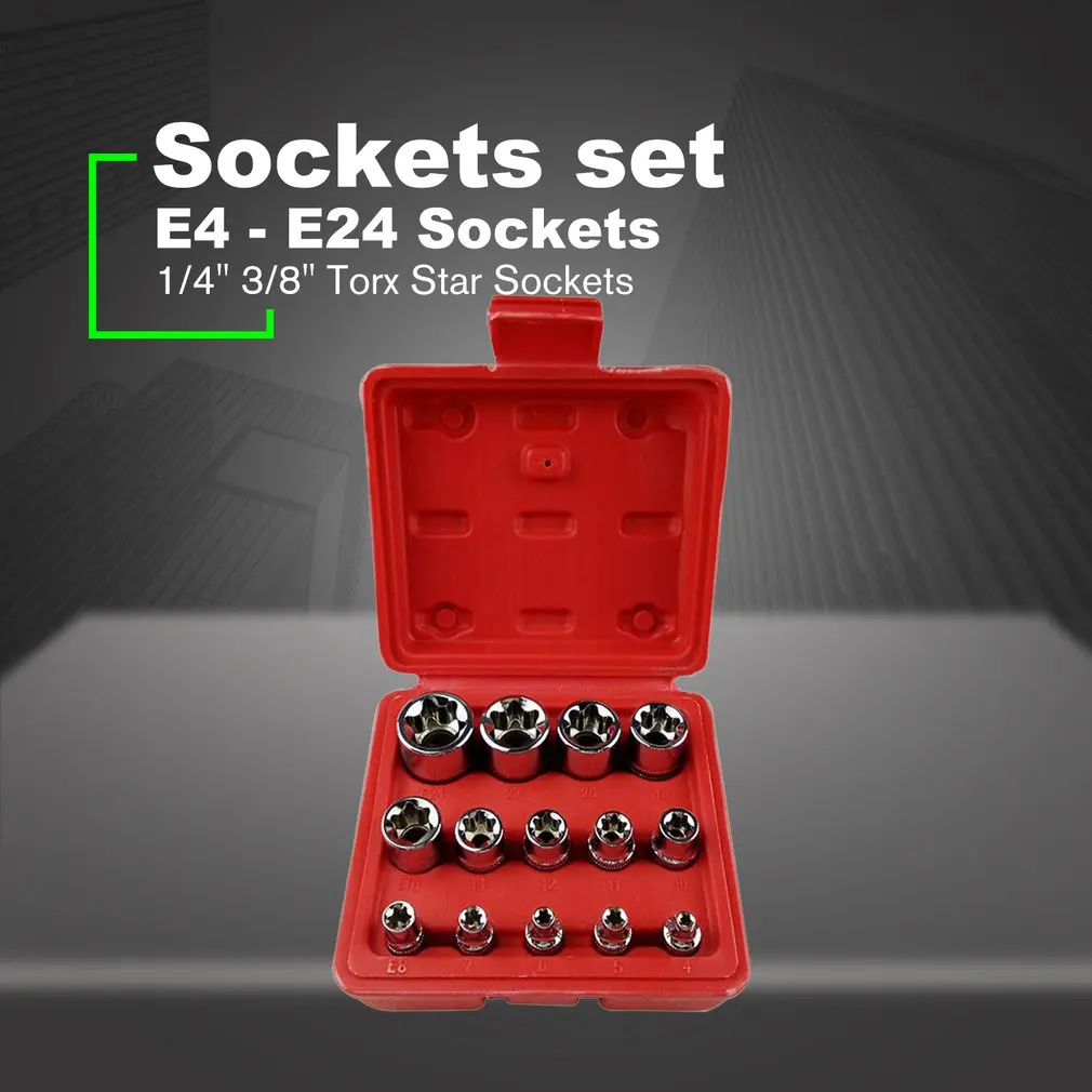 14 шт.компл. Женский комплект торцевых головок типа Е, головка гаечного ключа E4 - E24 14 дюйма 38 дюйма, Набор торцевых головок звезды, ручные инструменты для авторемонта