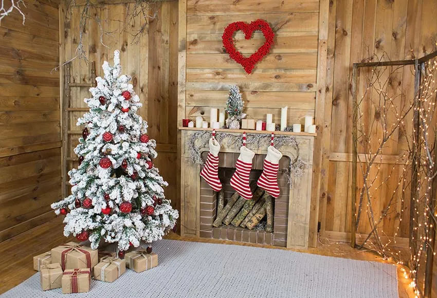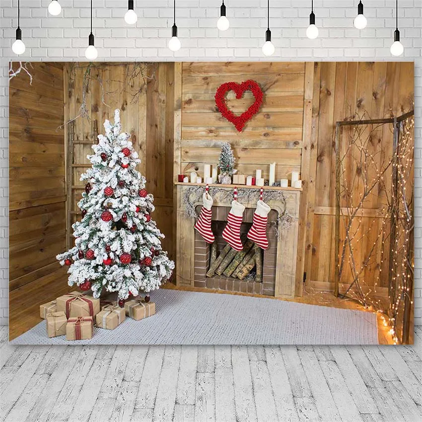 Декорации для фотографий Avezano с рождественской елкой, зима носки над камином, подарок, декор для фотостудии