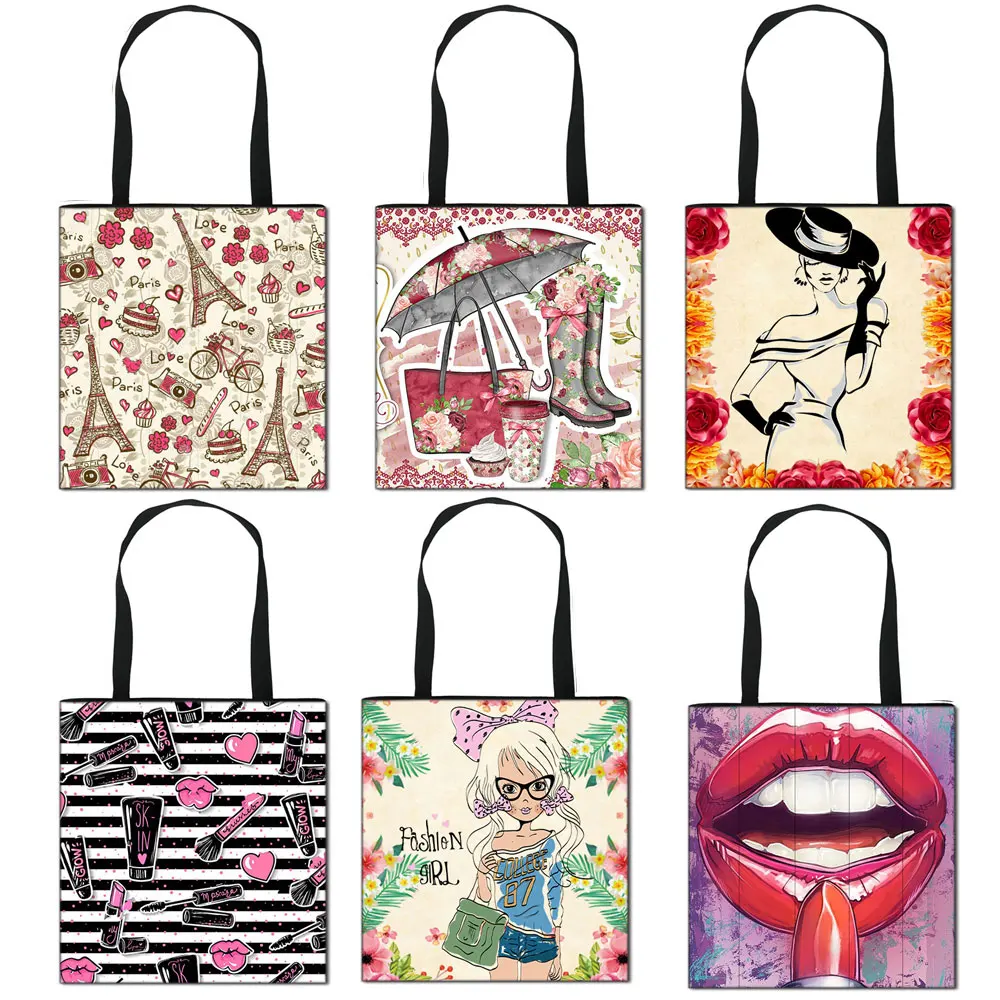 Привлекательная женская сумка на плечо с красными губами для путешествий, женская сумка, повседневные сумки-тоуты, модная женская портативная вместительная сумка для покупок