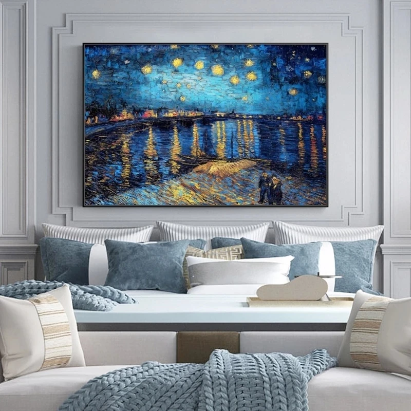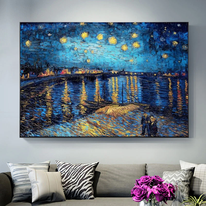 Картина с изображением картины Ван Гога звездной ночи над Rhone