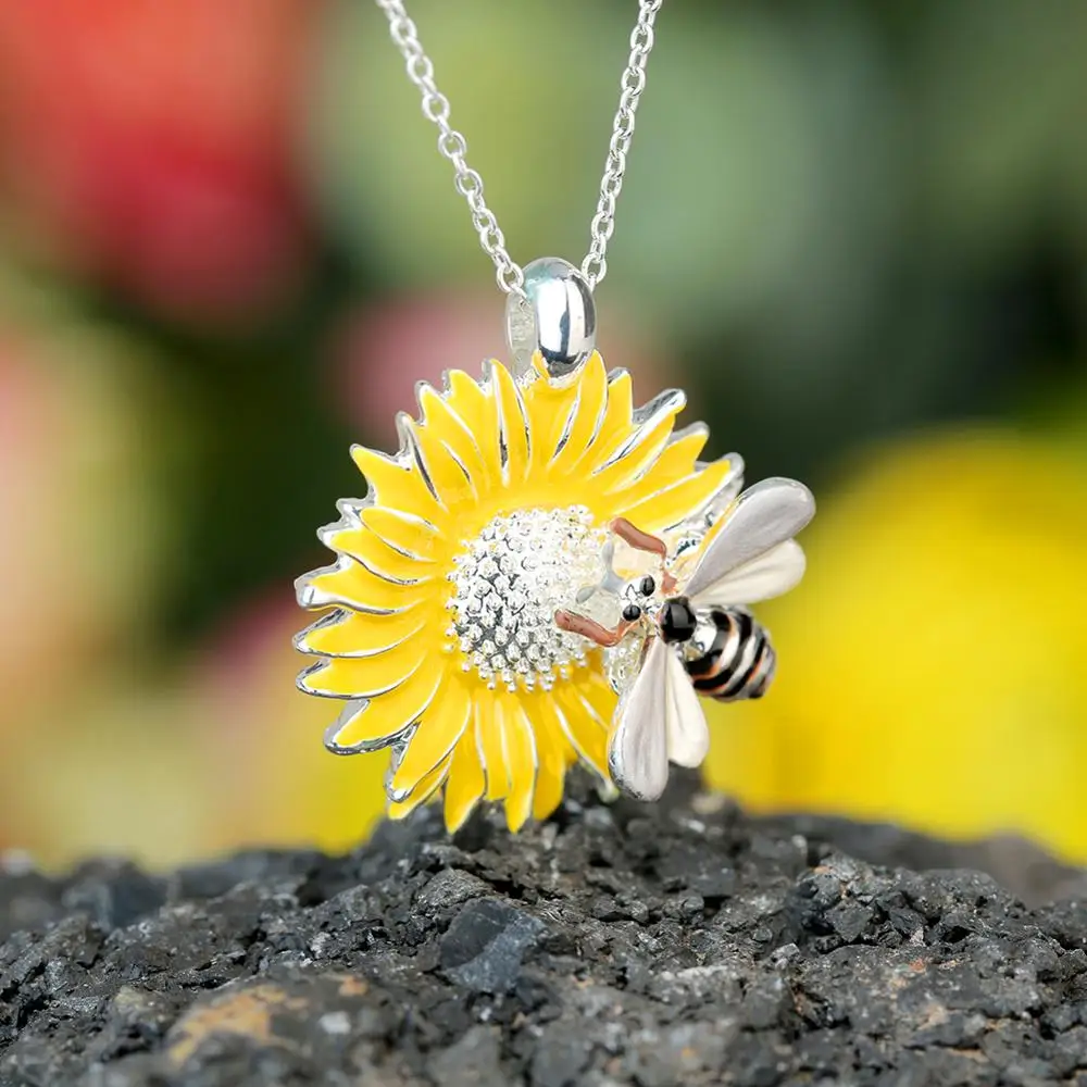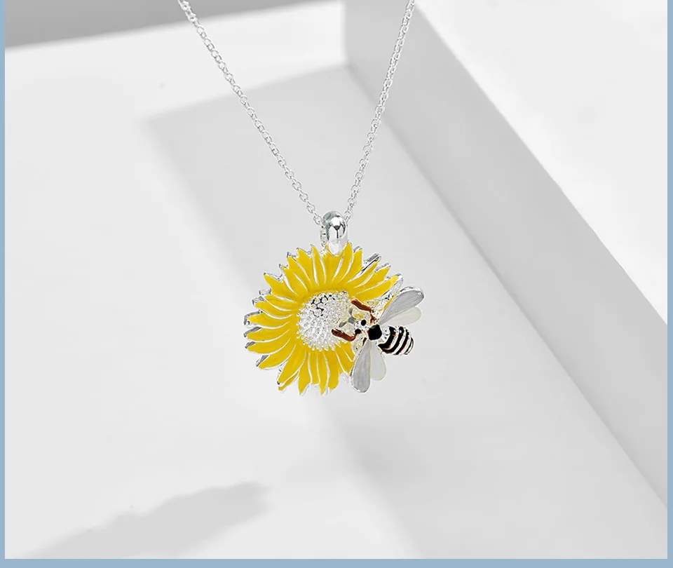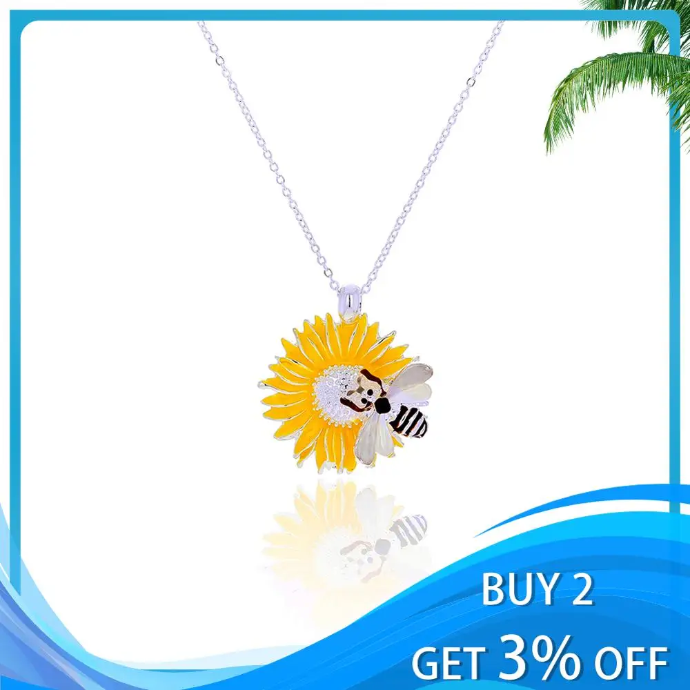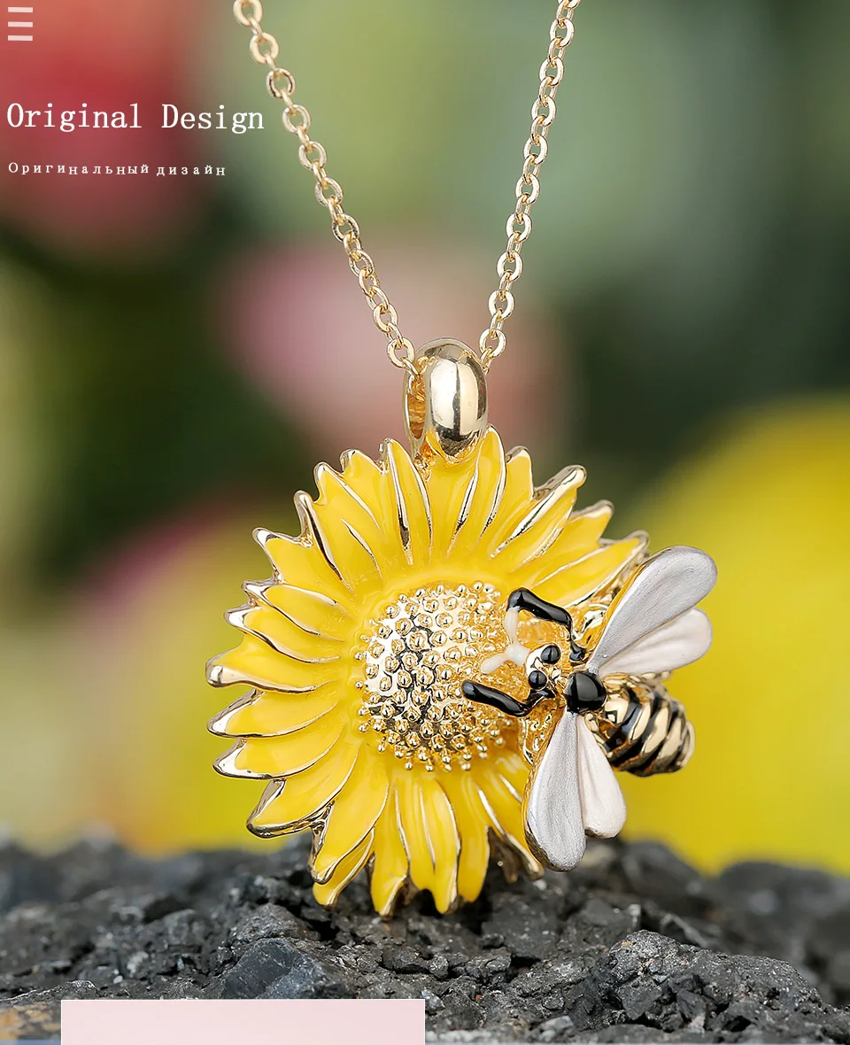 Цепочка с подвеской в виде пчелы, креативный дизайн, модная позолоченная цепочка с желтой эмалью, Подсолнух, маргаритки, ожерелья для женщин и девушек, подарки