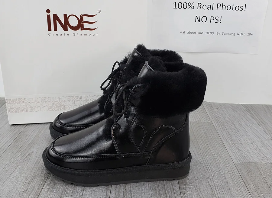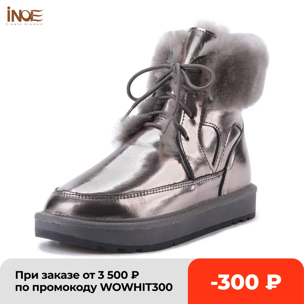 INOE 2021 модные стильные женские зимние зимние ботинки из натуральной коровьей кожи из натурального меха овец на шерстяной подкладке до щиколотки повседневная теплая обувь водонепроницаемая