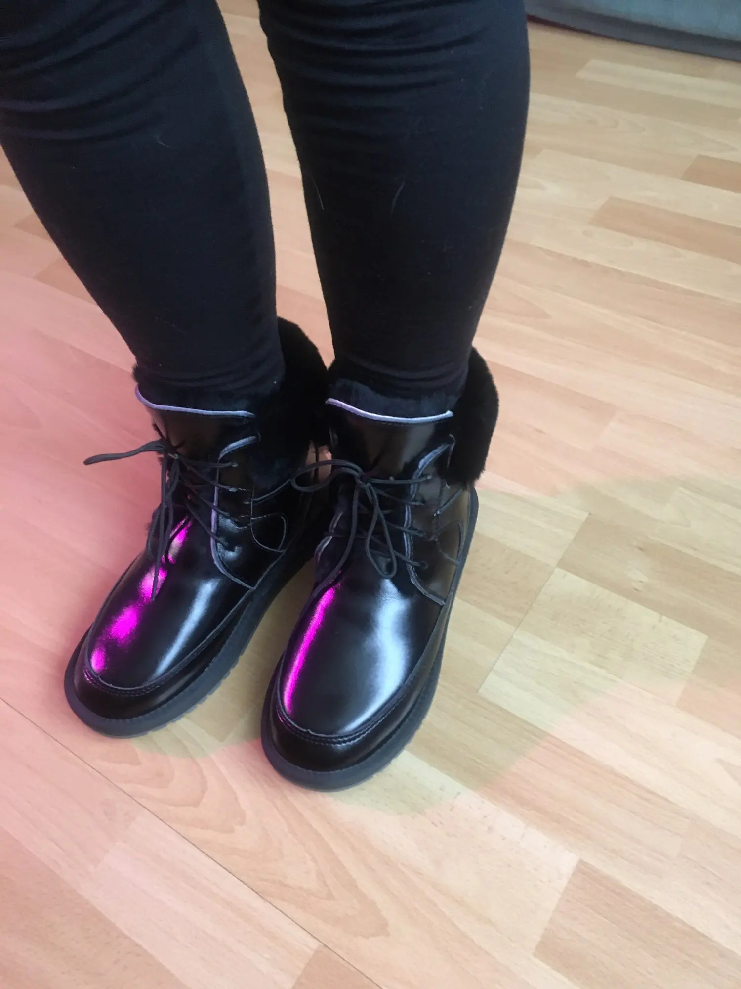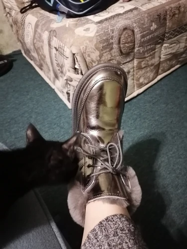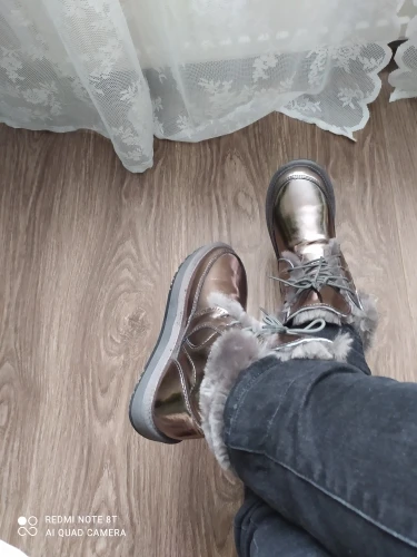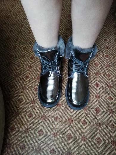 Думала ли я, что спустя столько лет тщетных попыток найти обувь, в которой через 30 минут хождения по снегу ноги всё так же остаются в тепле, я совершенно случайно наткнусь на такие ботинки, да ещё и за более чем приемлемую цену? Обувь не-ре-аль-но тёплая и удобная, сделана качественно, мех натуральный и в большом количестве, на ногах смотрится аккуратно и практически с любой одеждой уместно. Блеск умеренный, нога чувствует себя невероятно комфортно! Однозначно рекомендую к покупке, на размер 37 (23,5 см) брала 7 - сели просто идеально!