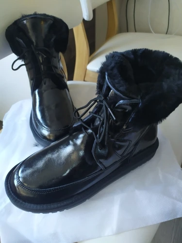 получила наконец-то свои тапули)))заказывала на распродаже,продавец умничка,посоветовал верный размер(на 25,5 хотела 9,он бы тоже подошёл,но в начале было не очень комфортно,мех густой,было бы прям тесно,только на капроновый носок, наверное, смогла бы носить,продавец сказал бери 10й и прям в точку)кожа супер,мех плотный, набивной,подошва прорезинена,не скользкая.отправили мне из через 1,5 часа после заказа,но получила только сегодня, думаю не стоит рассказывать почему(наша знаменитая таможня шарапово,там они были 2недели без движения вообще.но дошли уже хорошо.фото прикладывать смысла нет,один в один как у продавца,вот не дать,не взять.носочки и кусочек кожи,как у ботинок(на всякий случай,а случаи бывают разные)))) в подарок.заказала еще одни ,через день после этого заказа,но они еще в Ш....,думаю только после нг получу,на чудо с нашей таможней вообще не надеюсь.боты огонь!!!!