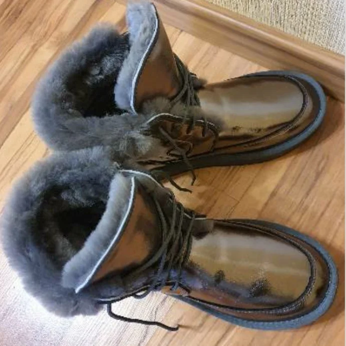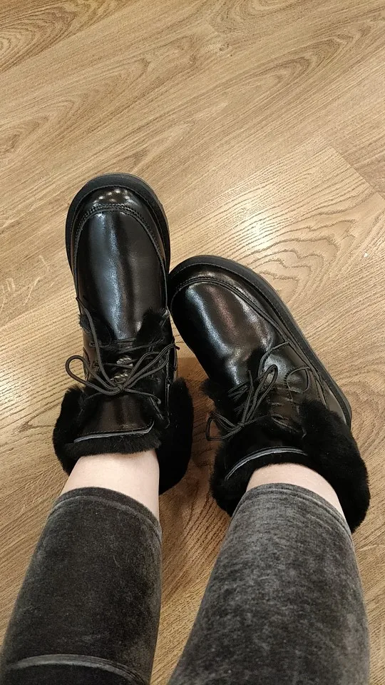 Ботинки отличные- натуральная кожа, натуральный мех. они очень удобные и мягкие. Мех толстый, греет очень хорошо. выглядят вживую в точности как на картинке. продавцу спасибо! Доставка до Москвы очень быстрая.