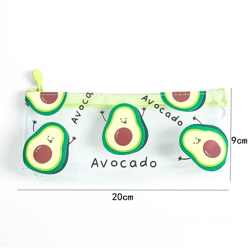 Пенал для карандашей, ПВХ, прозрачная канцелярская, с рисунком авокадо