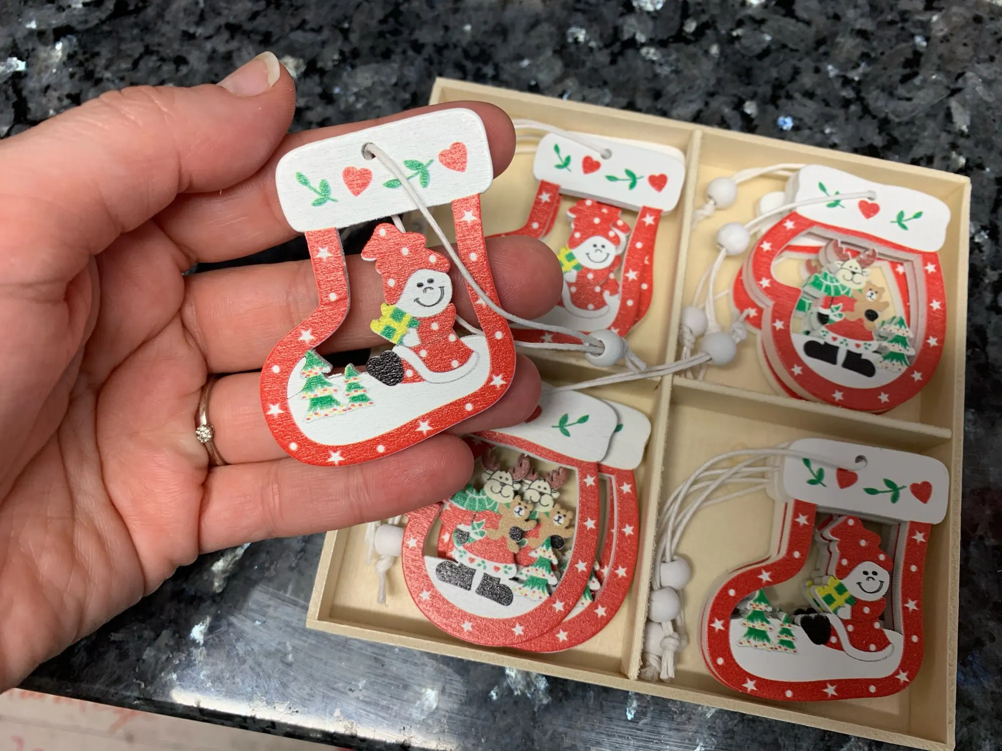 Это милые деревянные украшения. Они 4,5x5 см.