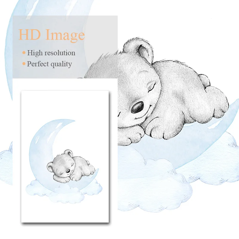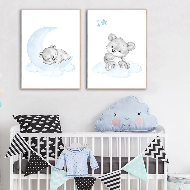 Картина на холсте в скандинавском стиле с изображением голубого медведя Луны для детской комнаты, настенный плакат с животными, украшение для спальни, детское украшение