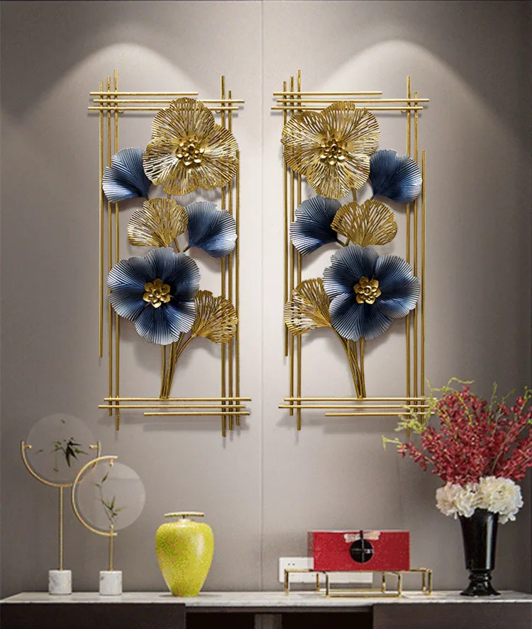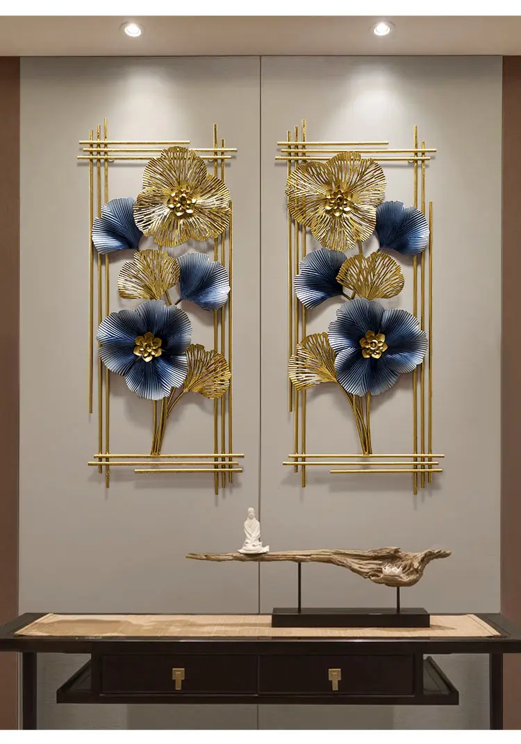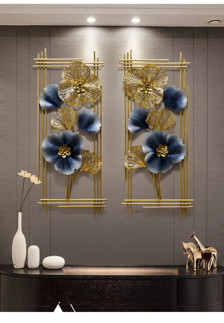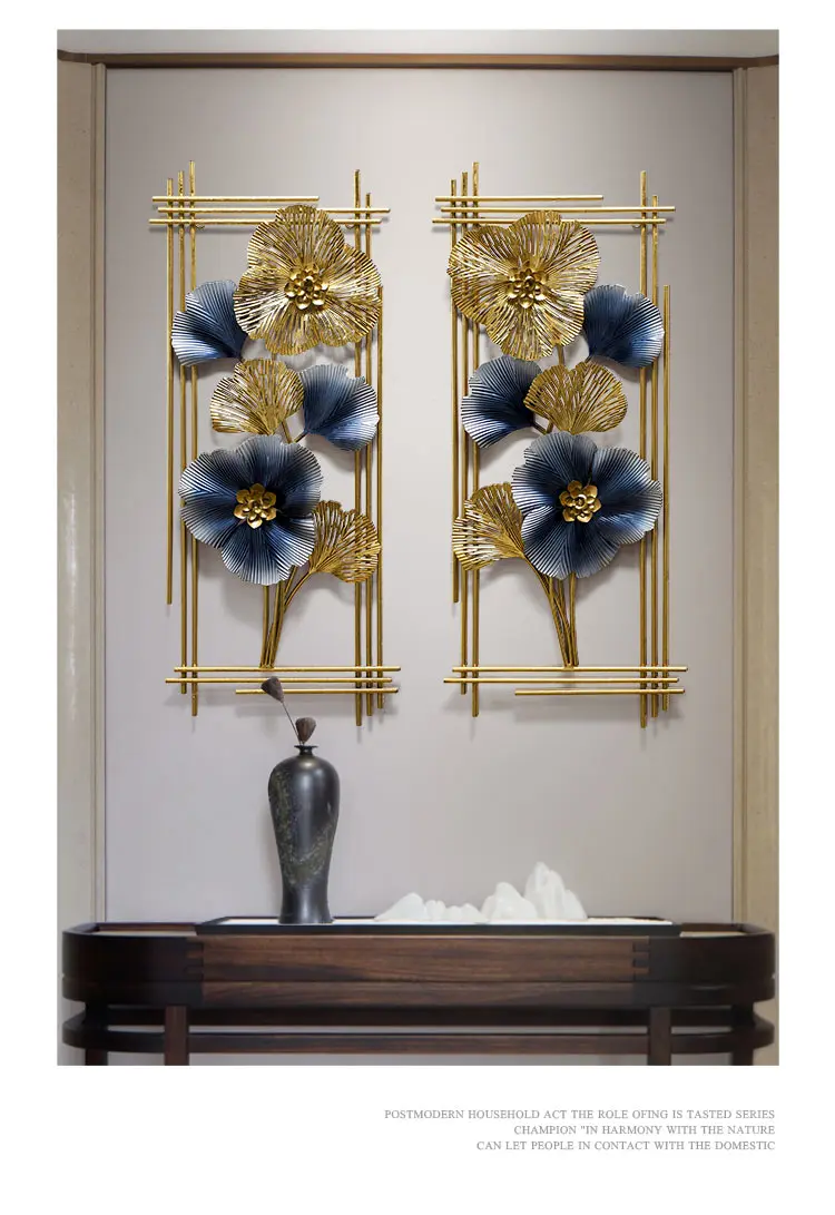 HHT 2 шт.пара креативный лист гинкго, Настенный декор, современный декор для гостиной, крыльца, телевизора, домашнее украшение для стен, металл